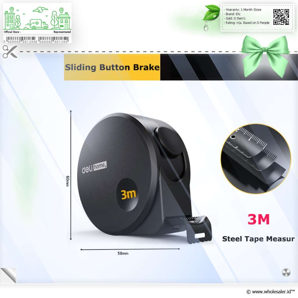 Pekerjaan Anda membutuhkan pengukuran yang presisiMeteran roll DELI Home HT8316 siap melakukan pengukuran cermat untuk Anda. Ukur berbagai furnitur dengan panjang pita mencapai 3 M. Lengkap dengan pengunci dan penahan di bagian ujungnya membuat pengukuran jadi lebih efisien.