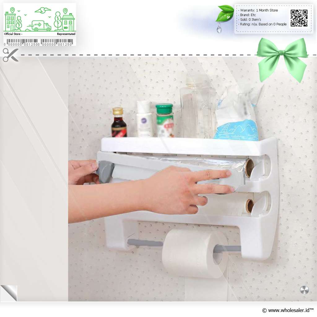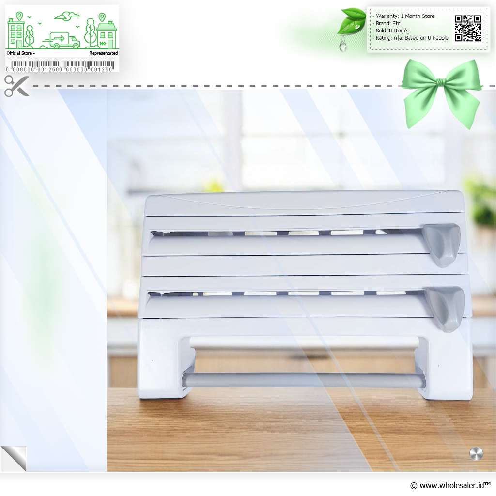 Rak ini memiliki beberapa kompartemen untuk menyimpan tisu, food wrap, tin foil, tisu serap minyak, cling film dan benda lainnnya yang berbentuk roll. Dengan rak organizer ini maka dapur Anda akan semakin rapi dan teratur. Terdapat cutter untuk memudahkan Anda memotong roll.