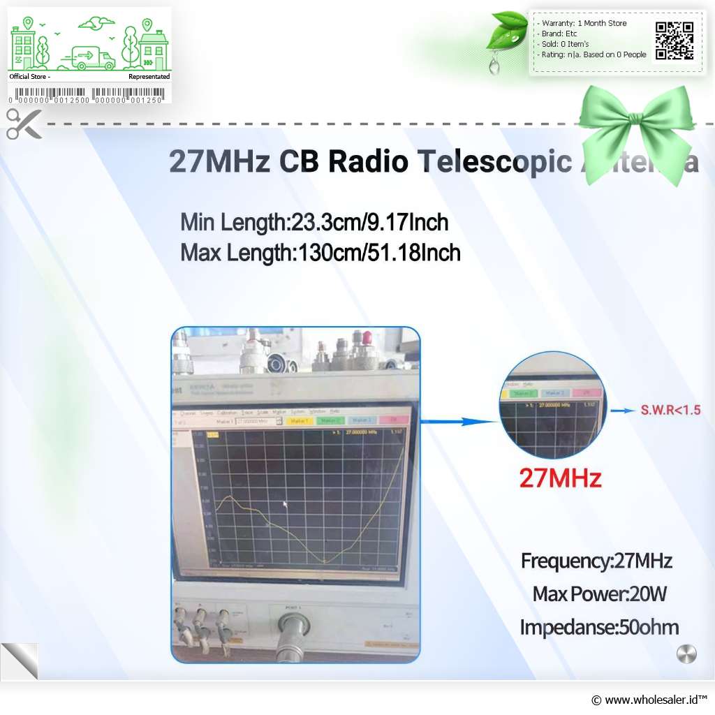 | Komunikasi Lebih Jauh dan Jelas Antena walkie talkie eroperasi pada frekuensi 27 MHz dengan impedansi 50 Ohm, menghadirkan transmisi sinyal yang efisien tanpa banyak kehilangan daya. Dengan daya maksimum hingga 20 W, antena ini mampu memperkuat sinyal walkie talkie Anda, menghasilkan kualitas komunikasi yang jernih dan stabil bahkan di area dengan hambatan sinyal tinggi. |