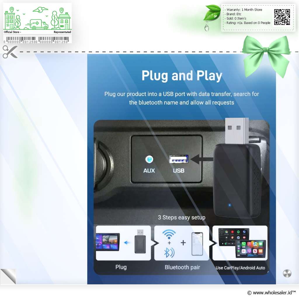 Plug and Play Tidak perlu instalasi rumit atau aplikasi tambahan, dongle ini menggunakan teknologi plug dan play. Cukup hubungkan ke head unit mobil dan sambungkan smartphone Anda, sistem akan berjalan secara otomatis dalam hitungan detik. |