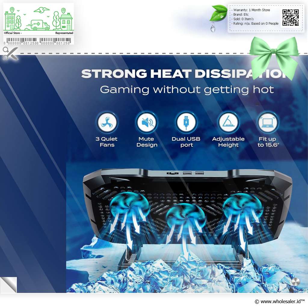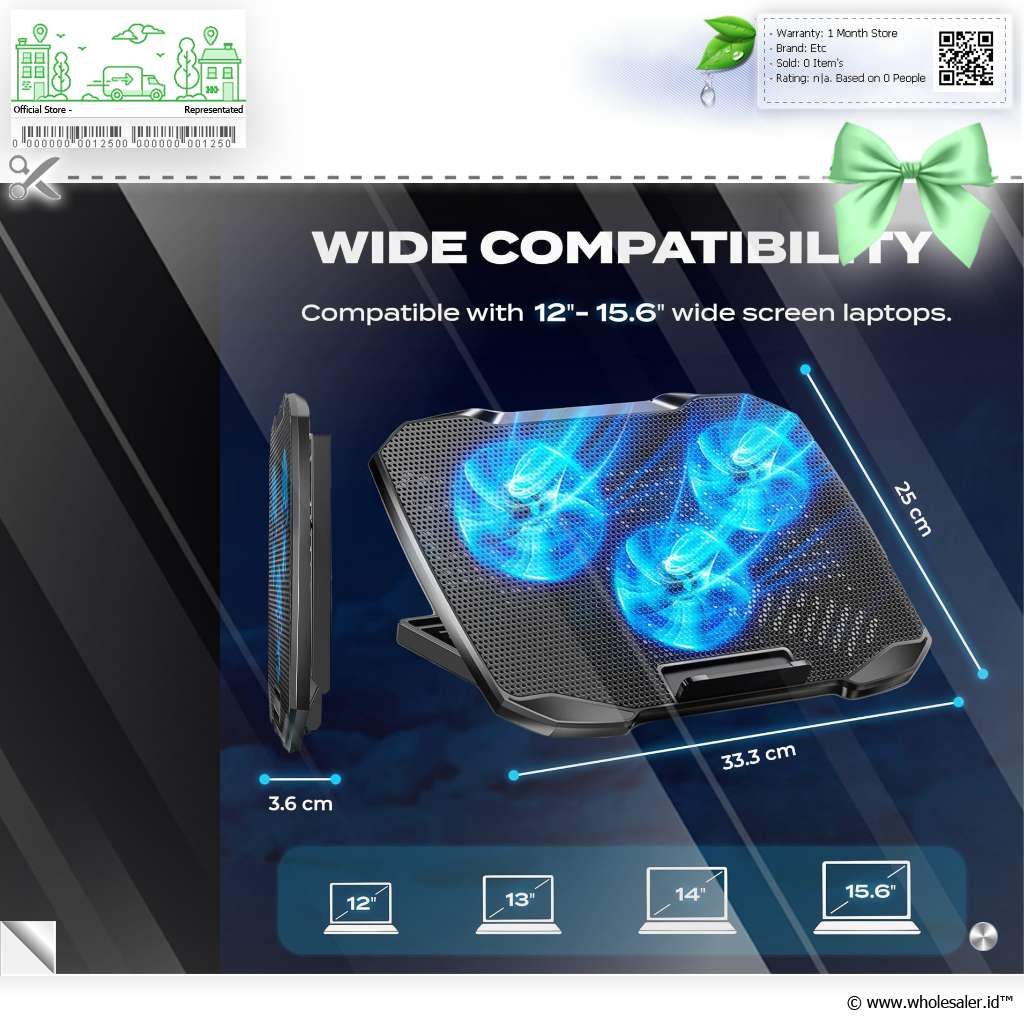 | Kompatibilitas Luas Produk ini kompatibel dengan laptop berukuran 12 - 15.6 Inch, sehingga cocok untuk sebagian besar laptop harian maupun gaming. Dimensi cooling pad ini 33.3 x 3.6 x 25 cm. |