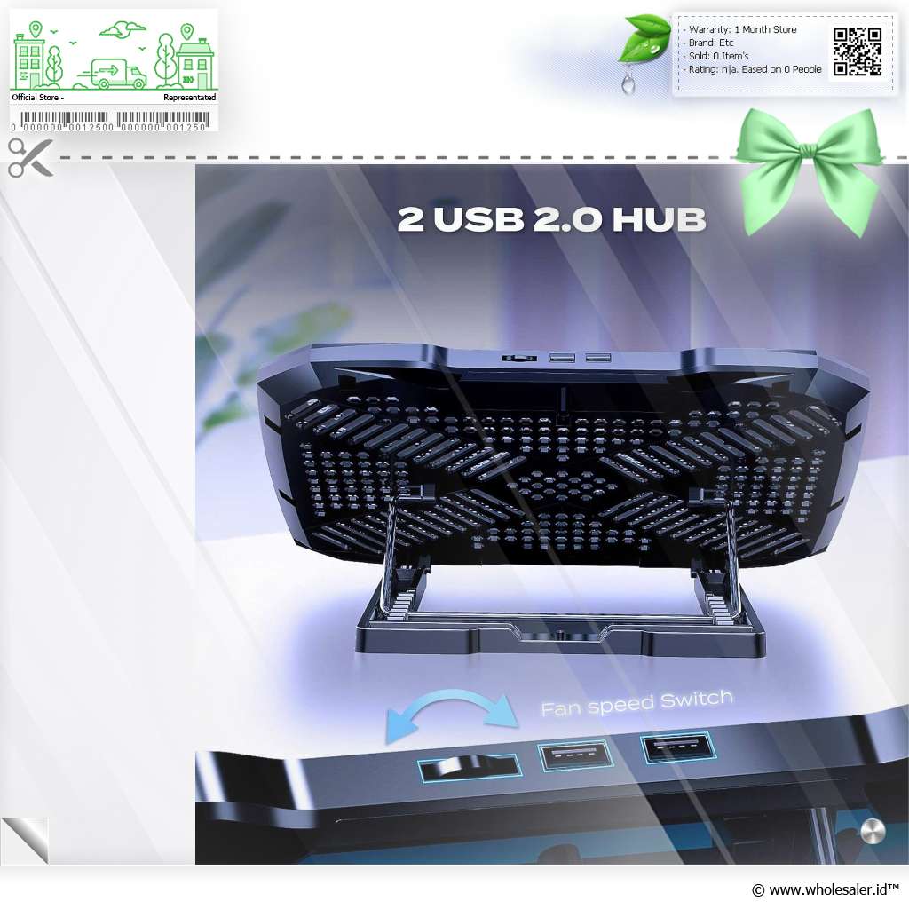 | Konektivitas Tambahan Tidak hanya sebagai stand dan pendingin, produk ini juga menyediakan 2 port USB 2.0 yang dapat Anda gunakan untuk menghubungkan perangkat lain. Misalnya mouse, keyboard, flash drive, atau aksesori lainnya. |
