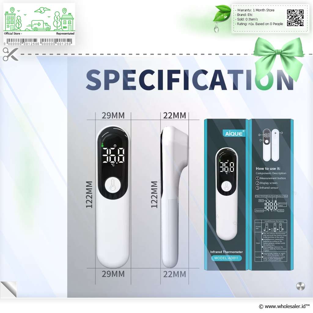 Informasi Produk AIQUE Termometer Suhu Badan Digital Thermogun Infrared Dual Mode - AD811