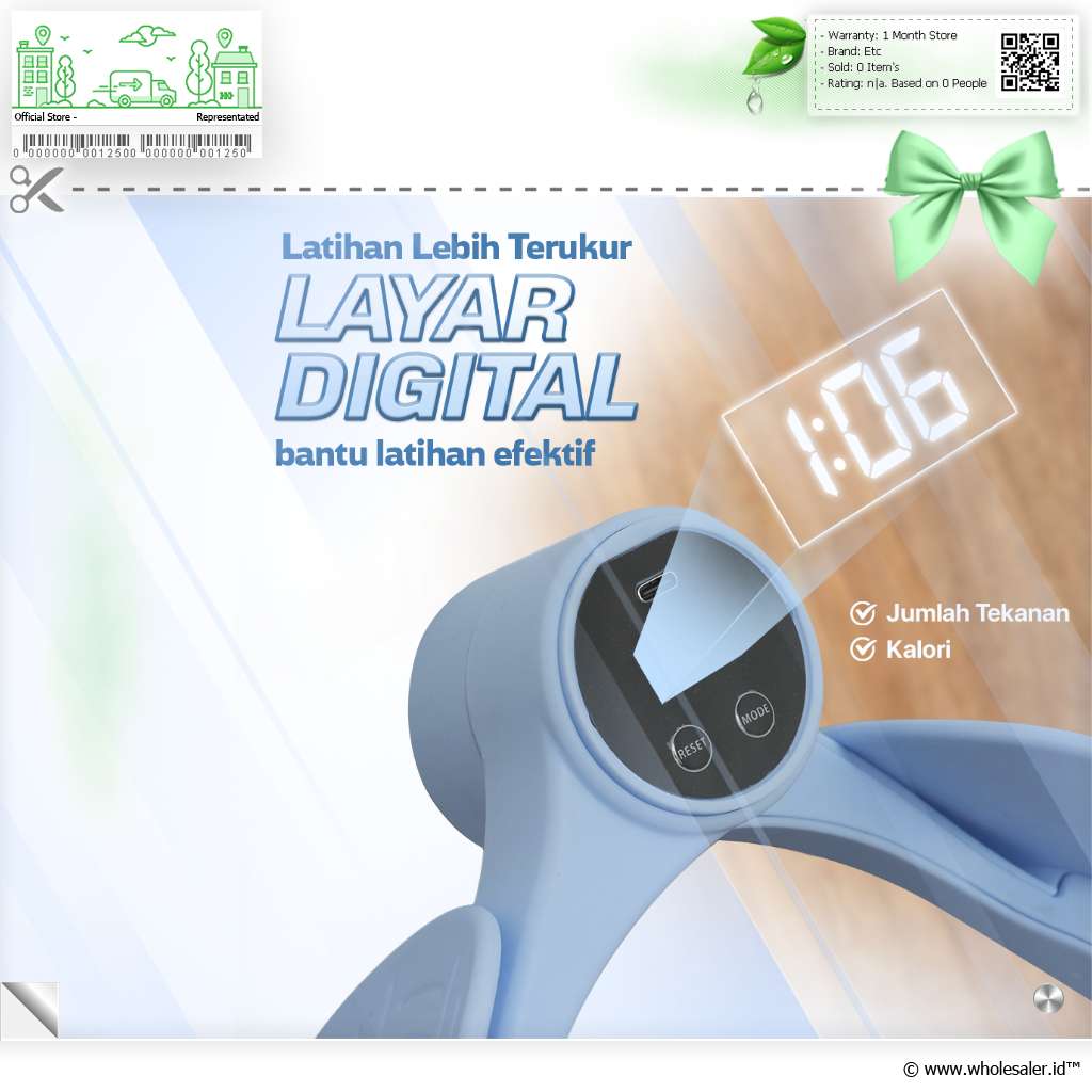 Dapatkan otot yang kuat serta bentuk tubuh ideal menggunakan hip trainer yang satu ini! Fitur Mekanisme Jepit Efektif Gerakan menjepit dengan tekanan tertentu memberikan latihan yang terfokus pada otot paha dalam, bokong, dan lengan. Nyaman dan Anti Slip Anda tak perlu khawatir kulit tergesek atau terasa panas, hip trainer ini menggunakan bahan PP dengan lapisan TPE bertekstur yang lembut dan tidak licin. Program Kalori dan Waktu Dilengkapi layar digital untuk menampilkan fungsi penghitung kalori dan counter otomatis, Anda dapat memantau intensitas latihan dengan lebih presisi.