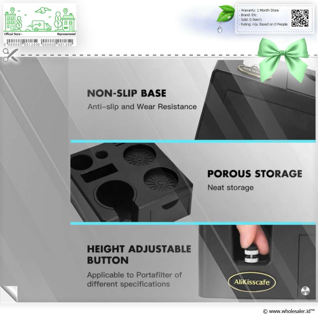 Tingkatkan estetika dan fungsi barista station Anda dengan ALIKISSCAFE Tamper Holder Stand, solusi elegan dan praktis untuk menata tamper dan portafilter dengan rapi. Dibuat dengan material ABS yang tahan lama, didesain untuk tamper berdiameter 51 - 58 mm dengan dimensi 178 x 178 x 76 mm, produk ini tidak hanya memudahkan aktivitas tamping Anda tapi juga menjadikan area dapur atau kafe Anda tampak lebih profesional dan terorganisir.
