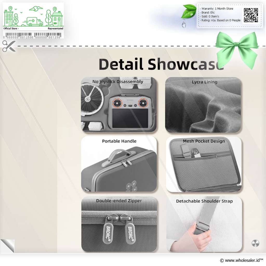 |  Kompartemen Luas dan Terorganisir  Selain untuk drone, tas ini juga dilengkapi kompartemen tambahan berupa kantong jaring mesh yang luas. Dirancang untuk menyimpan berbagai aksesoris pendukung drone Anda. Fitur ini memastikan semua perlengkapan Anda tetap teratur dan mudah diakses. |