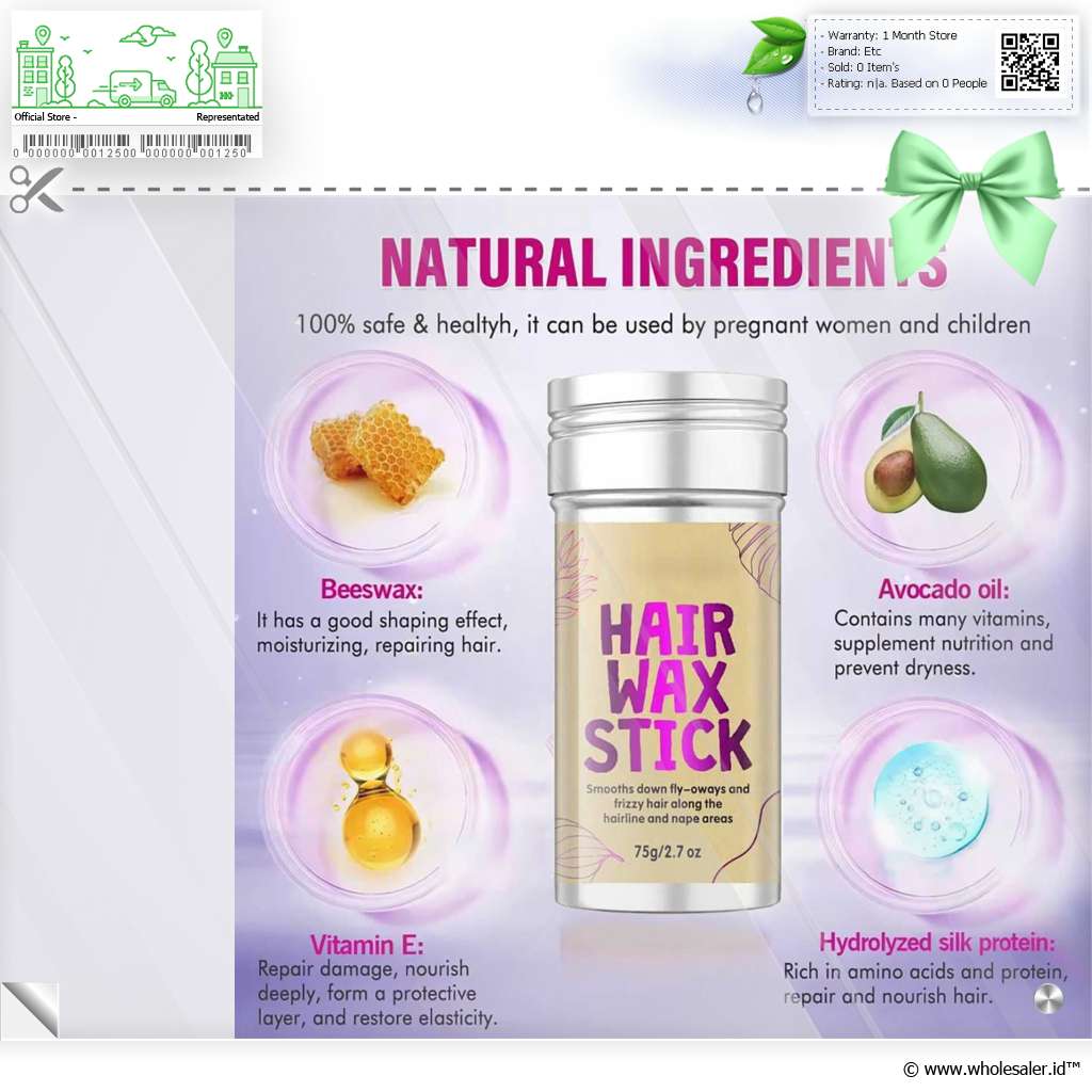 | Bantu Nutrisi Rambut Mengandung bahan-bahan bernutrisi yang bekerja menutrisi batang rambut sehingga rambut terlihat lebih sehat dan bersinar. Nutrisi yang terkandung pada wax stick ini bekerja hingga ke bagian terdalam batang rambut, membantu memperbaiki kutikula yang rusak yang membuat rambut menjadi lebih kuat, lentur, dan tidak mudah patah. |