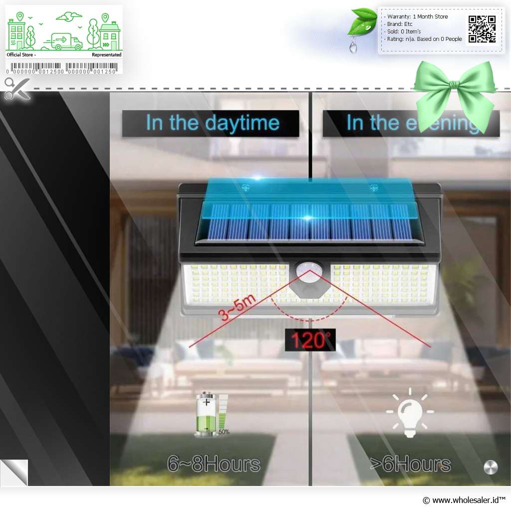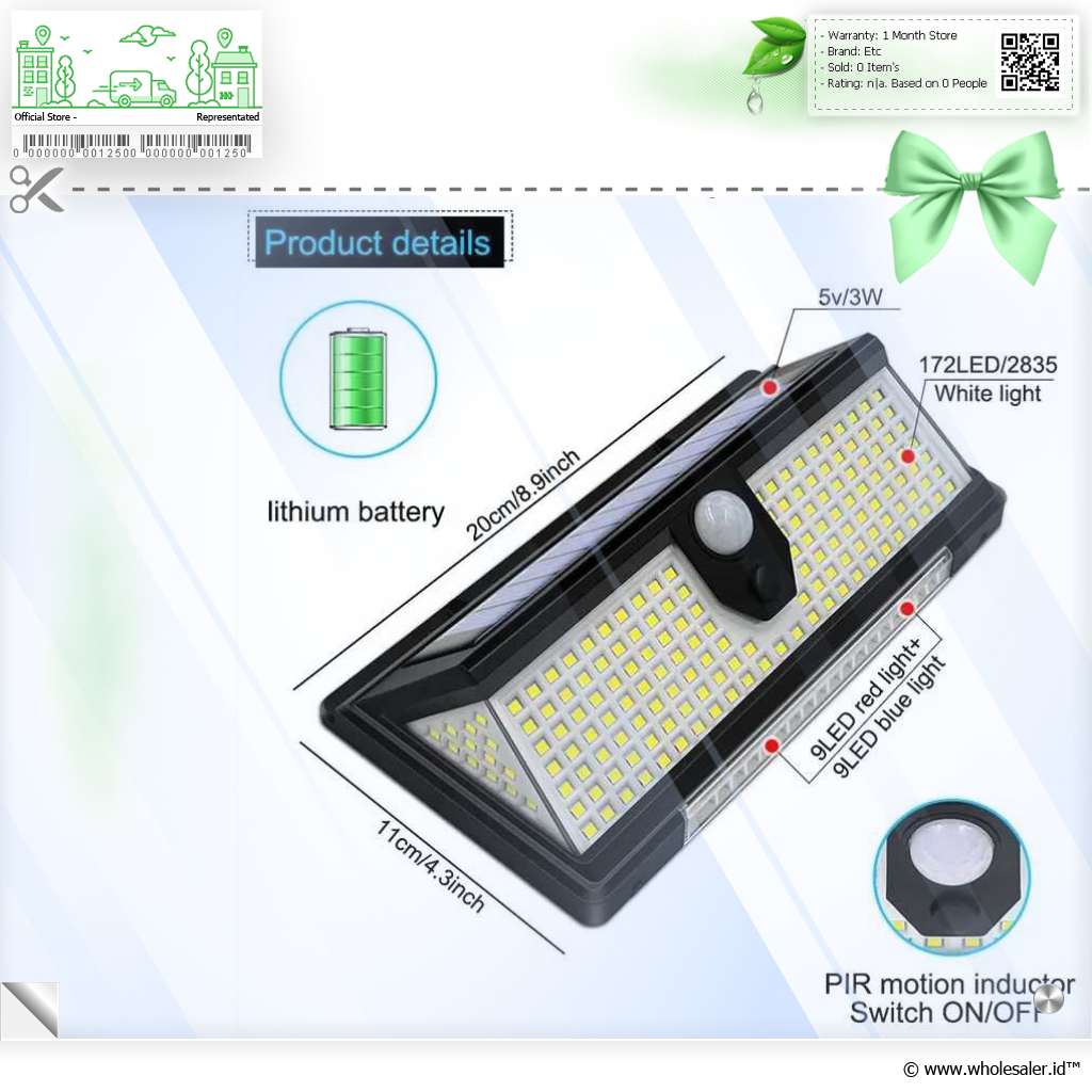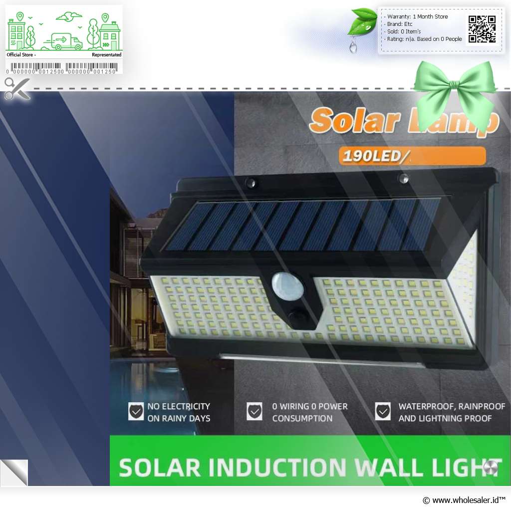 | 190 LED Super Terang Ditenagai oleh 190 buah lampu LED berkualitas tinggi, lampu ini mampu menghasilkan cahaya yang sangat terang meskipun tanpa sumber listrik utama. Cocok untuk area yang membutuhkan visibilitas tinggi di malam hari seperti pintu gerbang, jalan setapak, atau halaman rumah. |