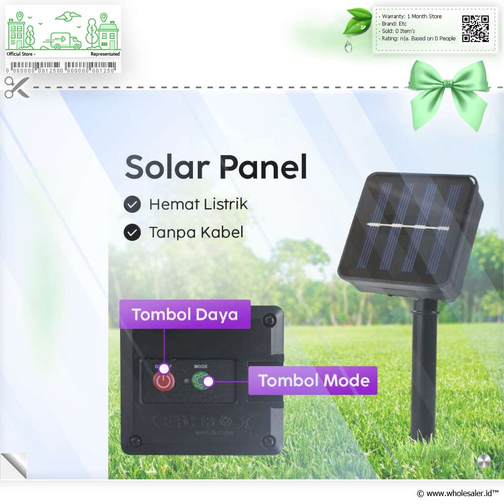 Dimensi | : | Panjang Kabel 12 M Tinggi Tiang 17.5 cm Solar Panel 7 x 6.2 x 2 cm |