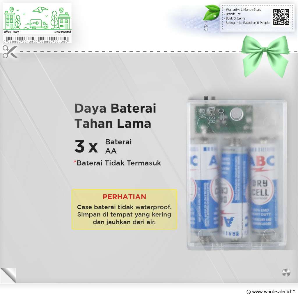 Sumber Daya Fleksibel Menggunakan 2 baterai AA sebagai sumber daya, Anda tidak perlu lagi khawatir soal colokan listrik atau kabel yang merepotkan. |