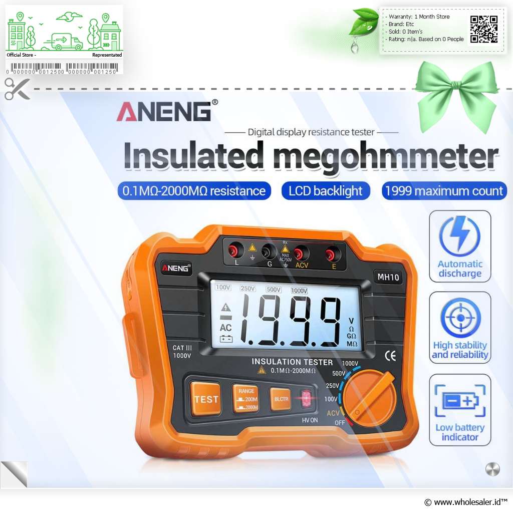 - 1 x ANENG Digital Megohmmeter Multifungsi Voltage Tester 1000V - MH10