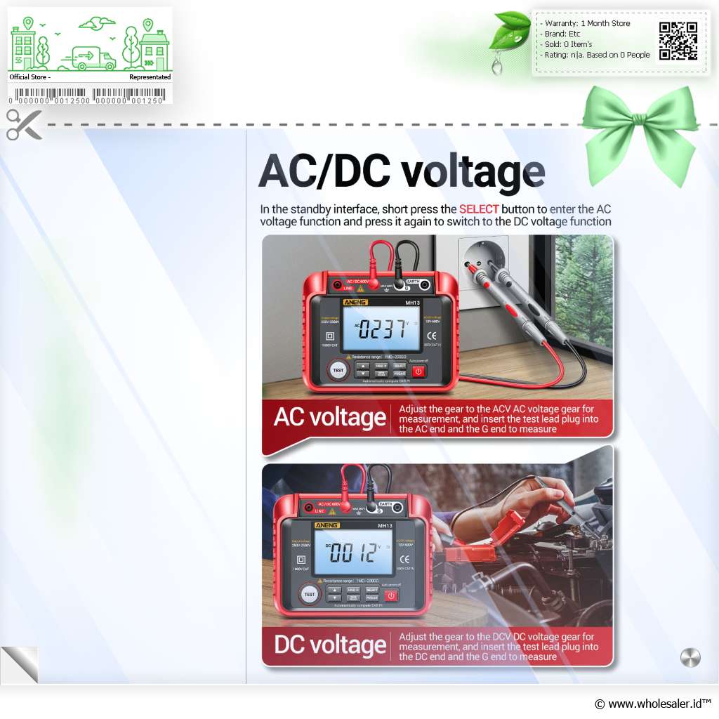 Informasi Produk ANENG Digital Megohmmeter Multifungsi Voltage Tester 2500V - MH13