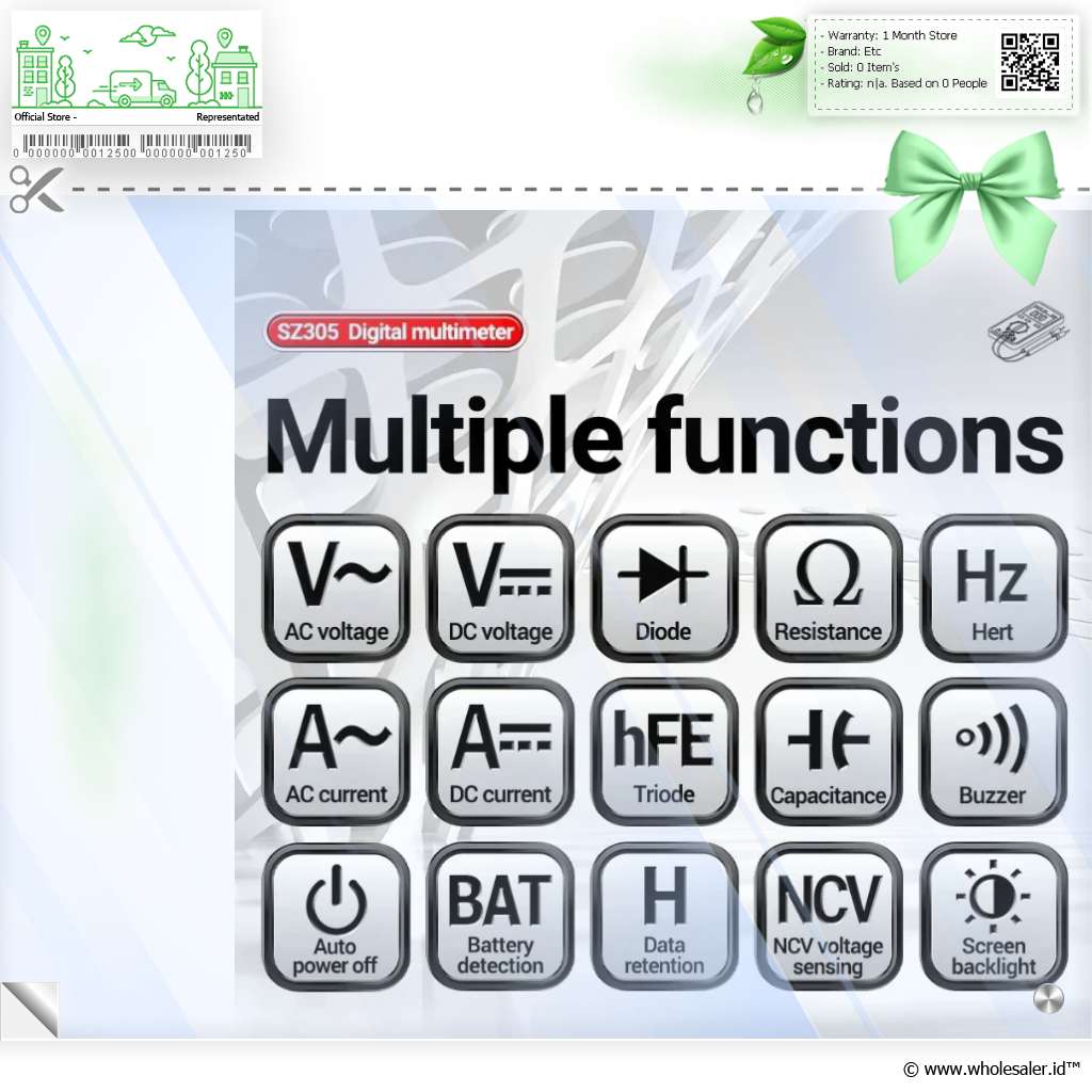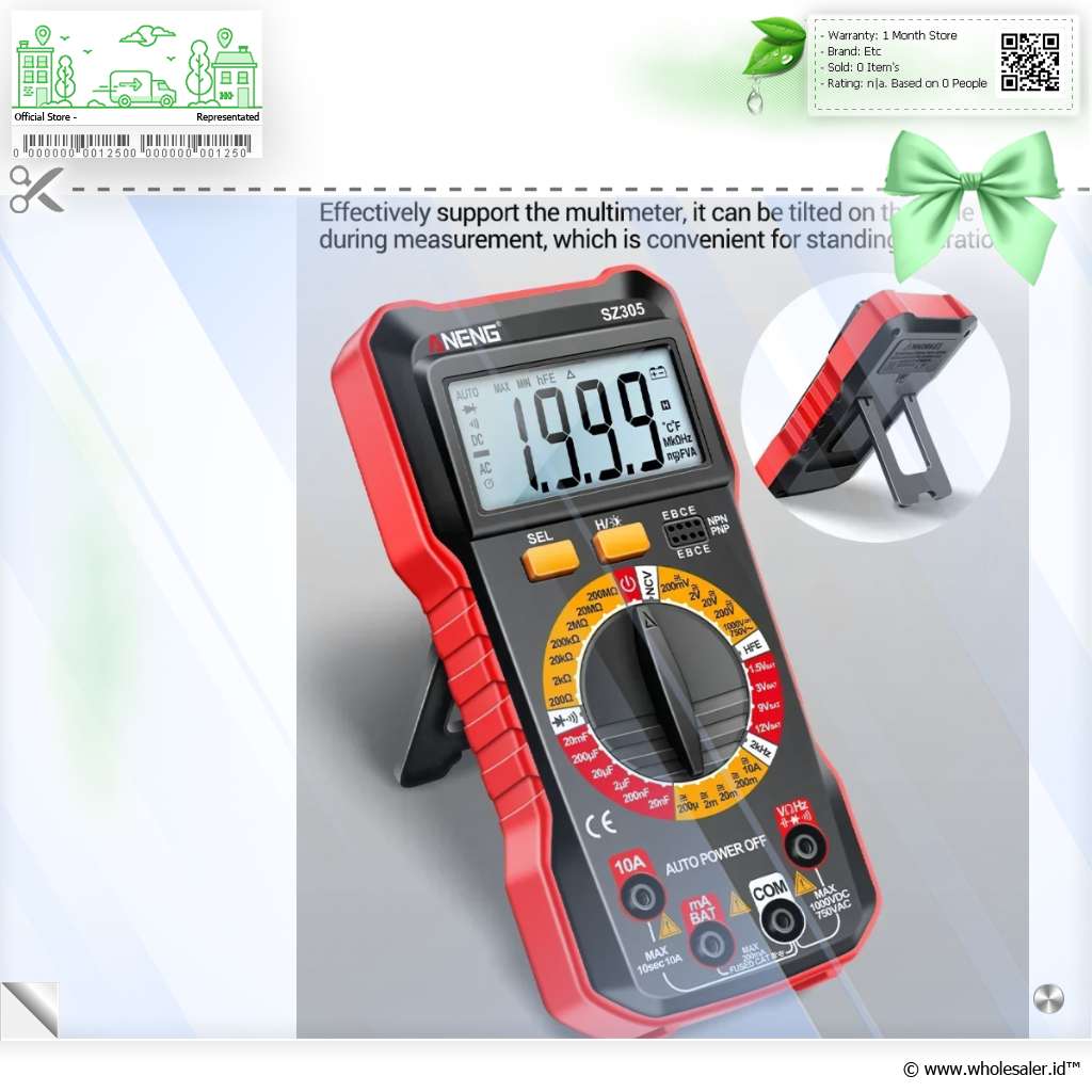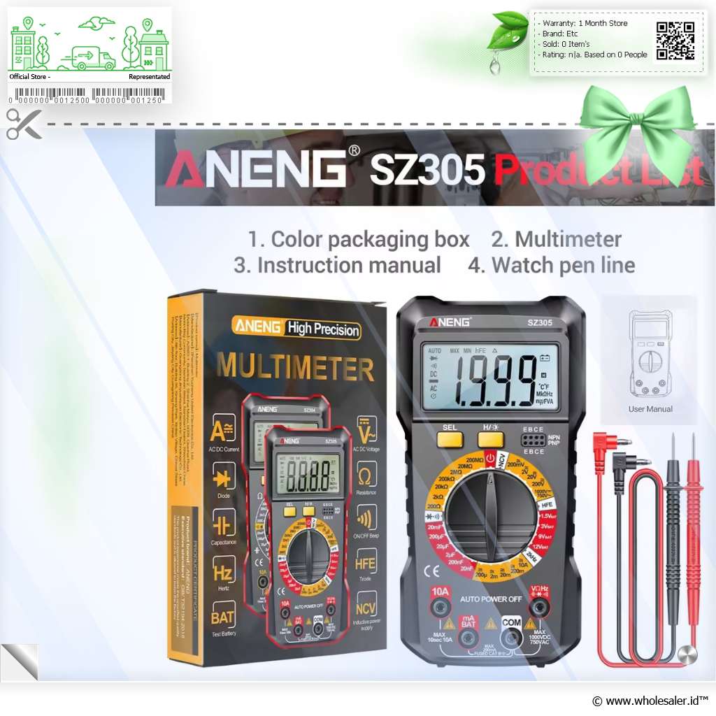 ANENG SZ305 Digital Multimeter adalah alat ukur serbaguna yang dirancang untuk menghadirkan keakuratan, keamanan, dan kemudahan penggunaan dalam satu perangkat portabel. Dengan tampilan 1999 digit yang jelas, fitur NCV tester untuk deteksi tegangan tanpa kontak, serta LCD backlight yang nyaman digunakan bahkan di area minim cahaya, alat ini sangat ideal untuk teknisi, pelajar, maupun pengguna rumahan. Desainnya dilengkapi back shrink support agar bisa berdiri stabil di berbagai posisi, serta hanya menggunakan dua baterai AAA untuk daya, menjadikannya kombinasi sempurna antara efisiensi dan kepraktisan.
