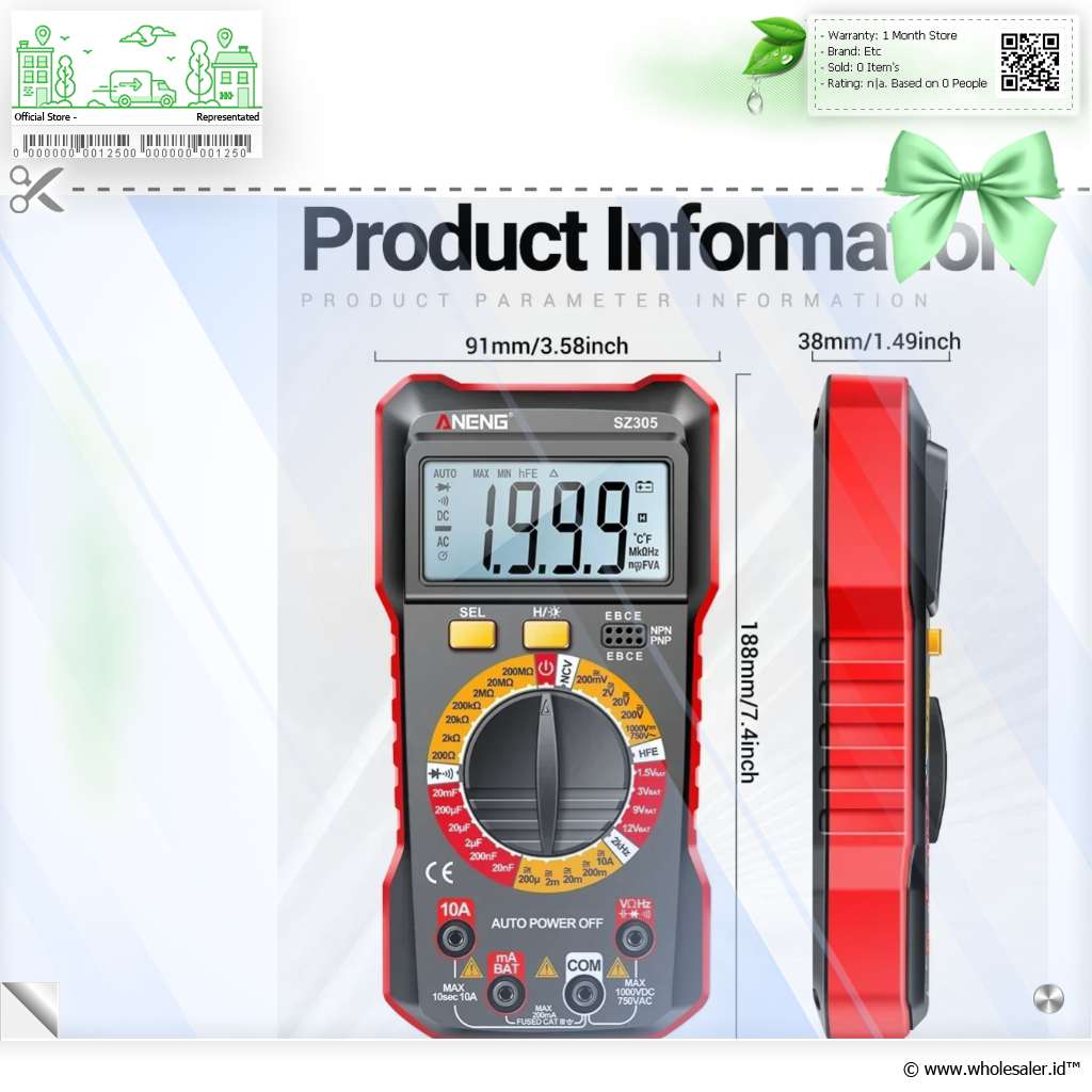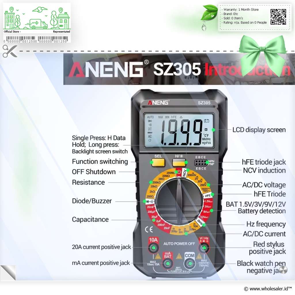 Informasi Produk ANENG Digital Multimeter Voltage Tester 1999 Count NCV Triode - SZ305