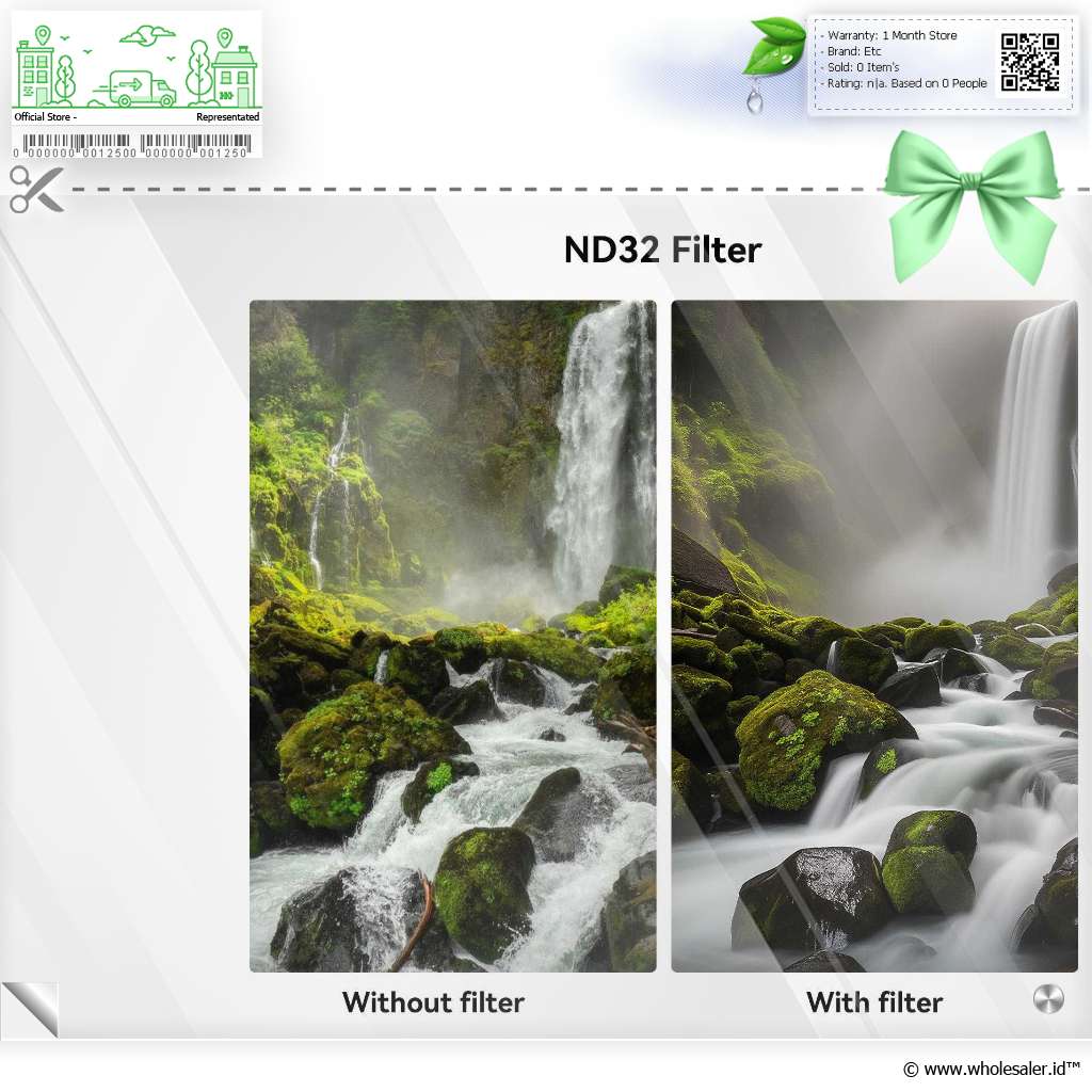 ND32 (Neutral Density) untuk Kontrol Cahaya Maksimal Kurangi intensitas cahaya tanpa mengubah warna, cocok untuk efek long exposure dan video sinematik. |