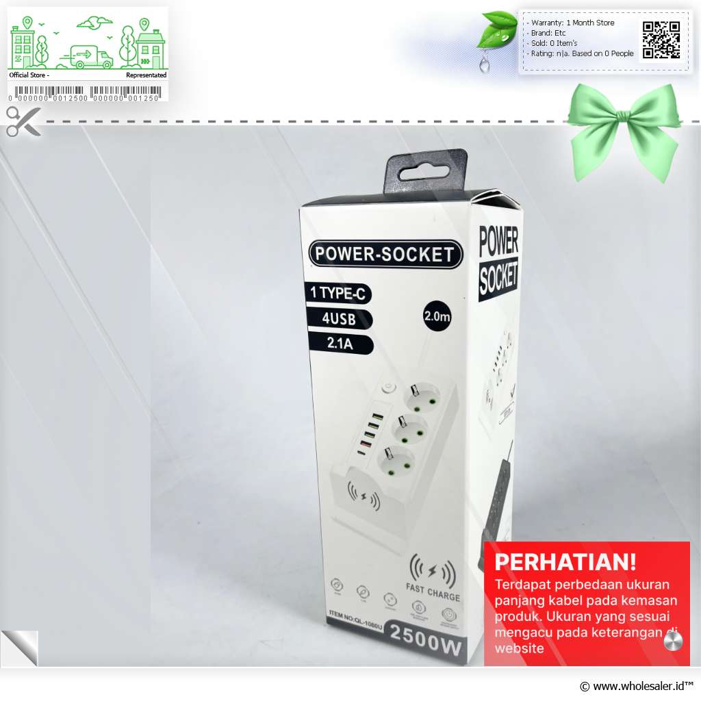 - 1 x AYANJIN Stop Kontak Kabel USB Wireless Charging 2500W 1.8M 3 Lubang - QL-1080U