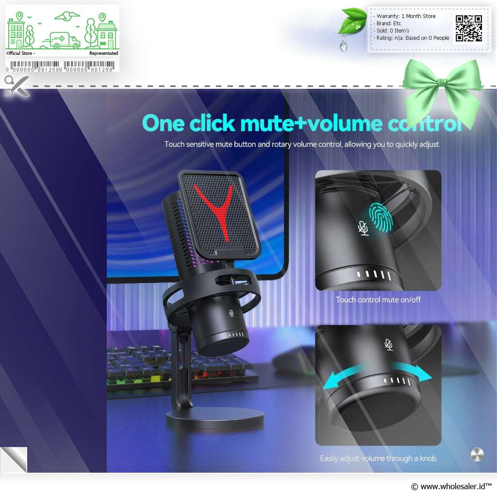 | Tombol Mute Sekali Sentuh Untuk mengaktifkan fitur mute, Anda hanya perlu menyentuh bagian bawah mikrofon. Fitur ini memungkinkan Anda mematikan mikrofon secara instan dan cepat tanpa mencabut kabel atau klik manual melalui software. Pengaturan volume juga bisa dilakukan dengan sangat mudah dan cepat dengan memutar knob di bawah. |