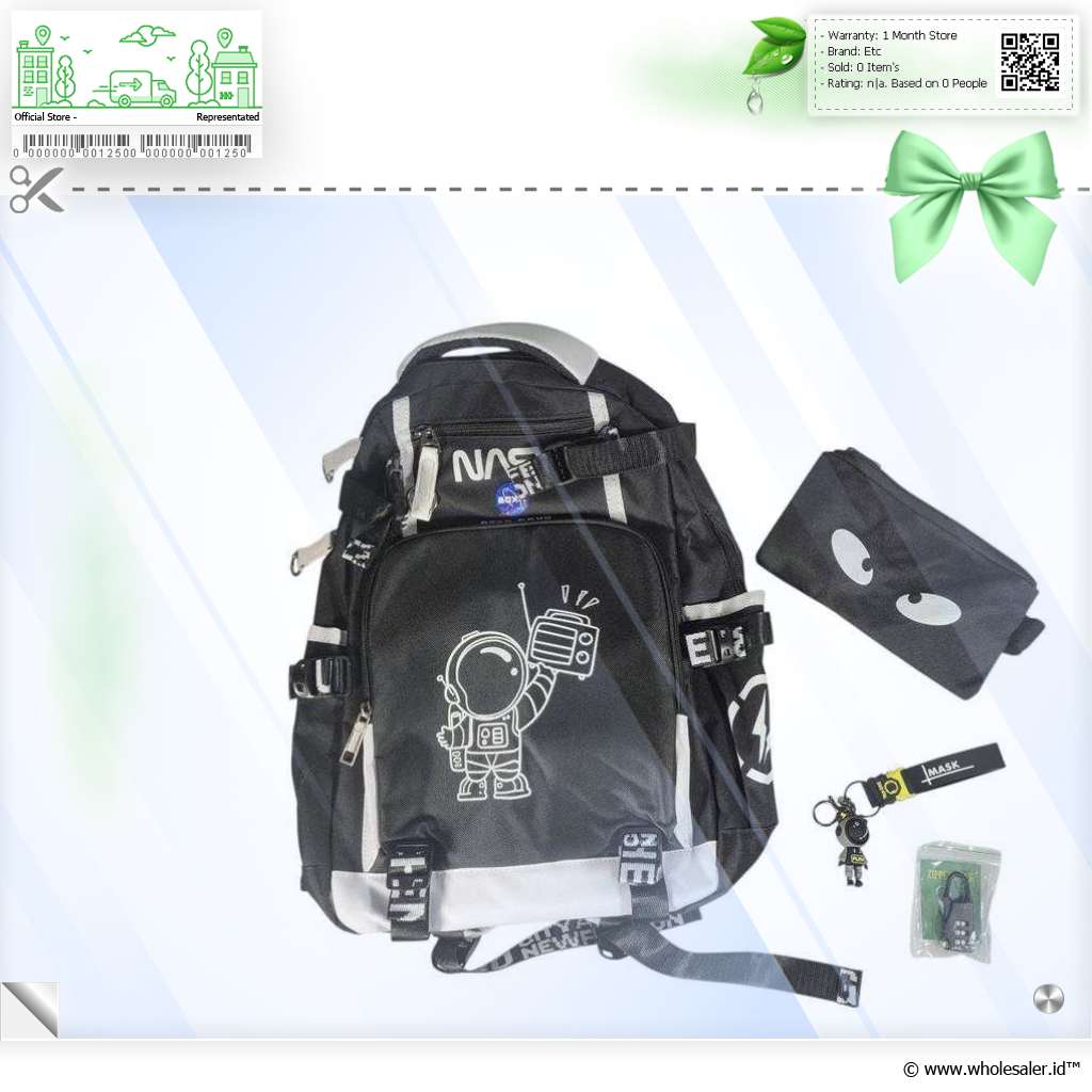 Sangat cocok digunakan untuk keperluan sekolah anak Anda, karena pembelian produk ini sudah termasuk tempat pensil, gembok tas, hingga gantungan astronot yang menggemaskan.