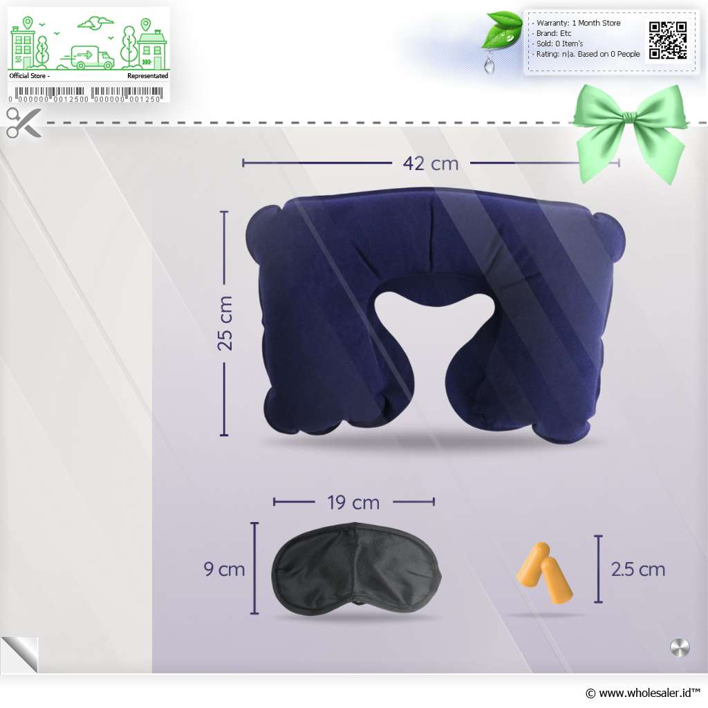 Informasi Produk Bantal Leher Travel Angin Earplug Eyemask Inflatable Neck Pillow