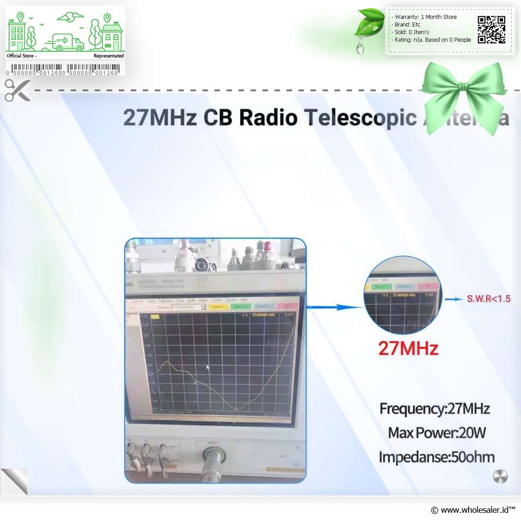 | Daya Kecil dan Frekuensi Luas Antena ini memerlukan 20 W input daya, dengan daya input ini, antena dapat mendukung transmisi yang lebih kuat dibanding antena standar. Antena ini dirancang untuk beroperasi pada pita frekuensi sekitar 27 MHz, suatu rentang yang umum dipakai untuk komunikasi radio seperti CB atau aplikasi walkie talkie tertentu. Dengan memakai frekuensi 27 MHz, Anda dapat memanfaatkan channel yang sesuai dengan kebutuhan perangkat Anda. |