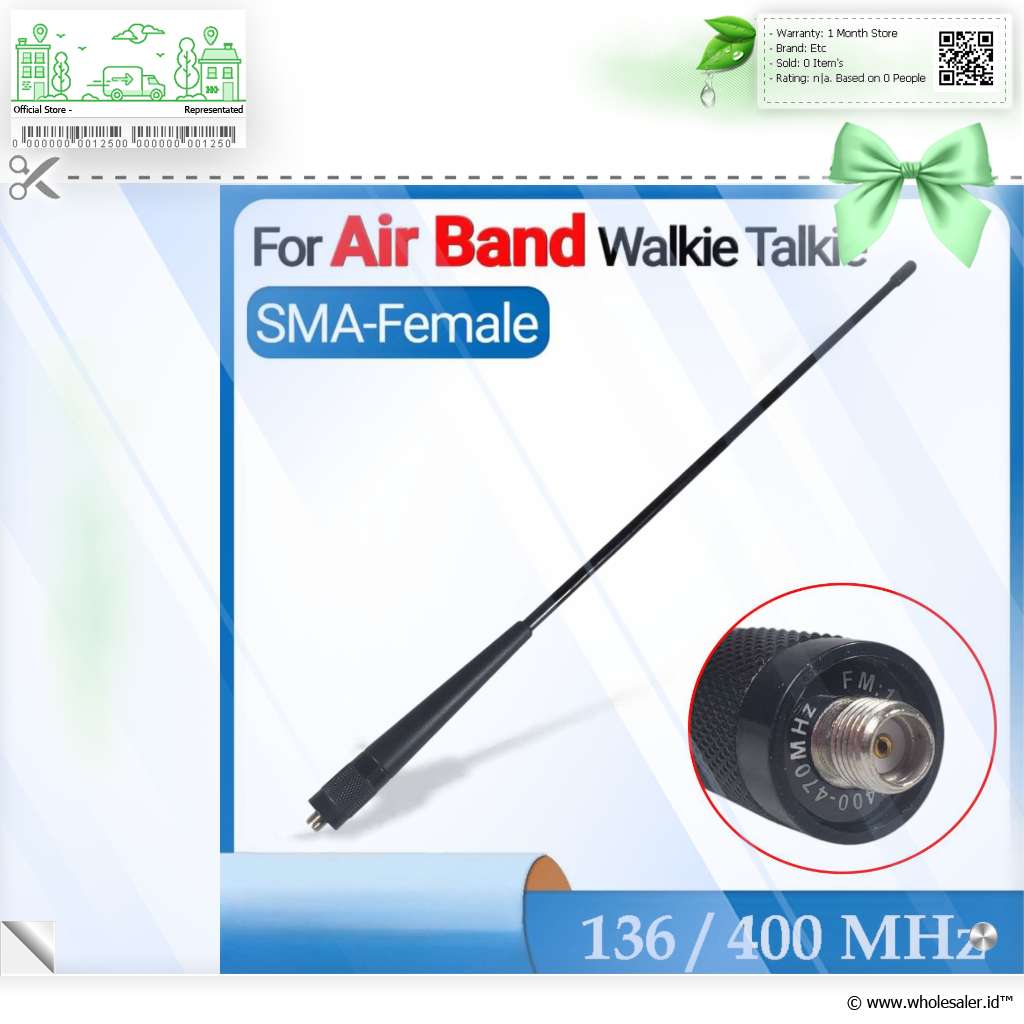 | Konektor SMA Female Antena menggunakan konektor SMA Female, yang biasanya dipasang menyesuaikan perangkat yang memiliki konektor male SMA. |