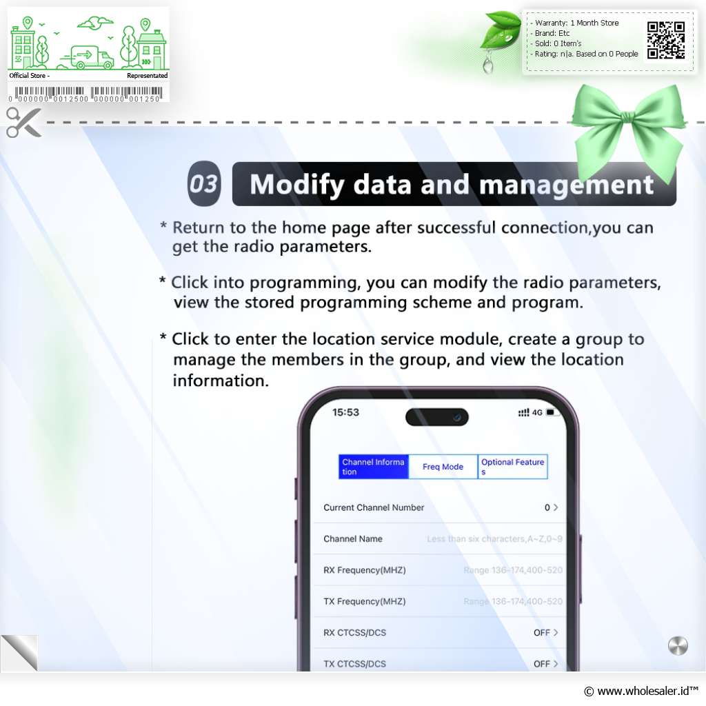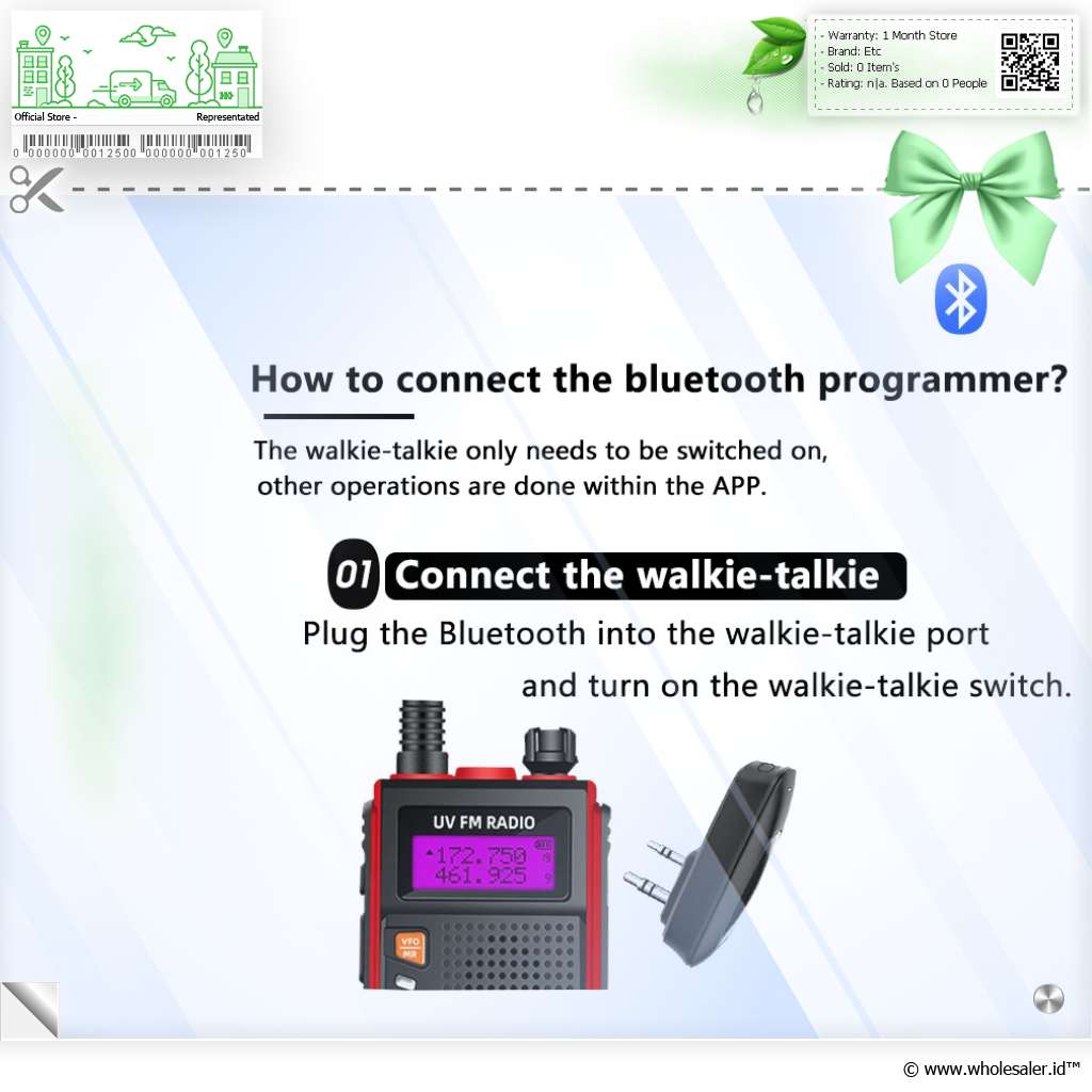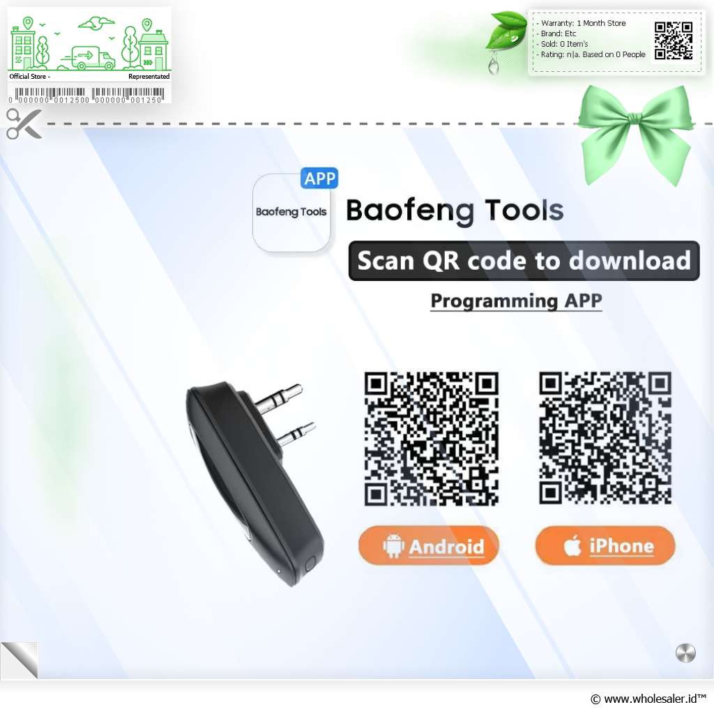 | Pengoperasian Mudah Adaptor ini memungkinkan Anda mengoperasikan dan memprogram walkie talkie melalui smartphone menggunakan aplikasi Baofeng Tools yang terkoneksi via Bluetooth. |