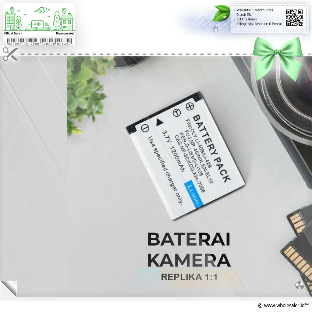 Informasi Produk Baterai Kamera CASIO FUJIFILM KODAK NIKON OLYMPUS SANYO 1200mAh - Li-42B (Replika 1:1)