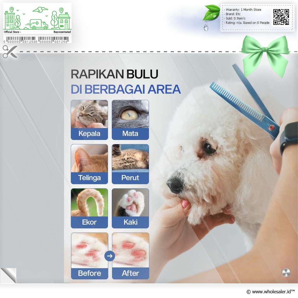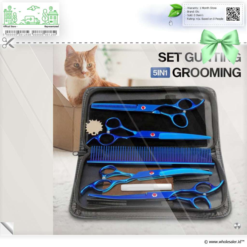 | Dimensi | : |  Gunting Grooming Lengkung 19 cm Gunting Grooming Sasak 17.7 cm Gunting Grooming Lurus 18.9 cm Sisir 18.7 cm Penguat Baut 2.7 cm Kain 10.9 x 7 cm  |