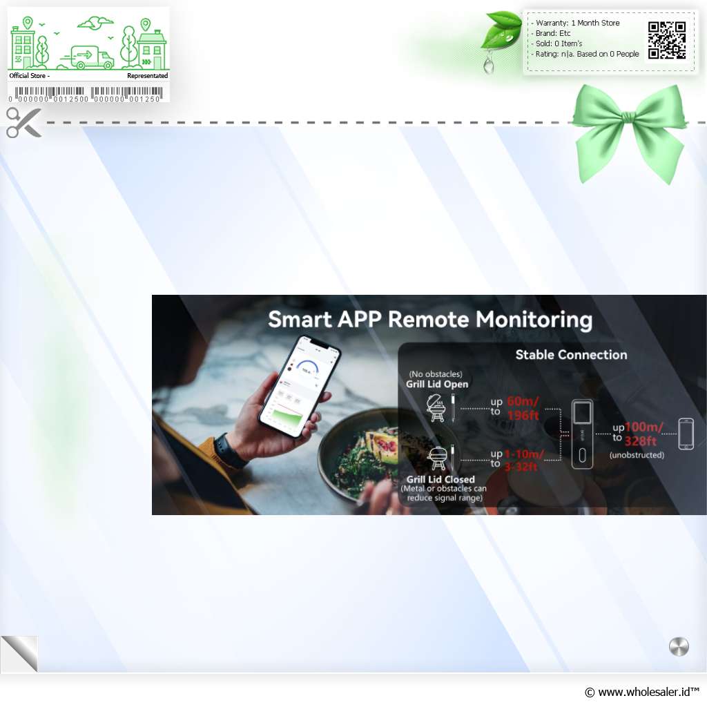 | Koneksi Bluetooth Stabil Dilengkapi teknologi Bluetooth 5.2, BFOUR menawarkan koneksi cepat, stabil, dan hemat daya dengan jarak operasional hingga 100 M. Melalui aplikasi BF Home, Anda dapat memantau suhu secara real time, mengatur alarm suhu ideal, dan melihat grafik perubahan suhu langsung dari smartphone Anda. Kini, Anda tak perlu lagi berdiri di depan panggangan, cukup pantau masakan dari jarak jauh dengan kendali penuh di genggaman. |