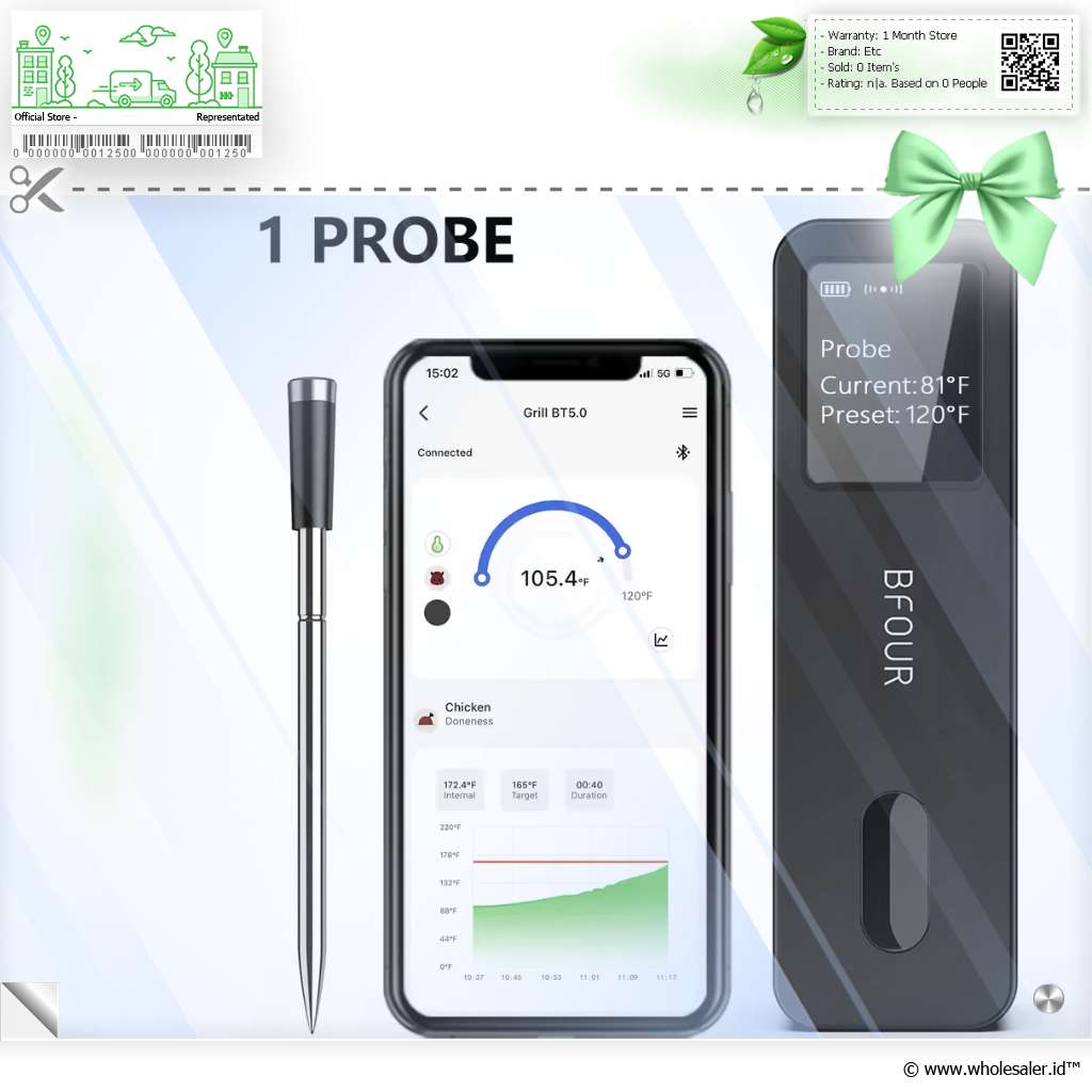 - 1 x BFOUR Termometer Makanan Daging Digital Wireless Screen Holder 1 Probe - BF-30