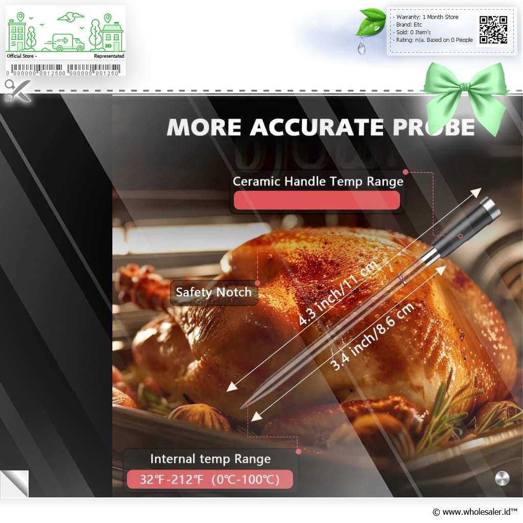 | Aman Dari Air dan Uap Panas Probenya telah dilengkapi dengan sertifikasi IP67 waterproof, yang berarti tahan terhadap air, uap, maupun kelembapan tinggi. Fitur ini memungkinkan Anda membersihkan probe langsung di bawah air setelah digunakan tanpa risiko kerusakan. |