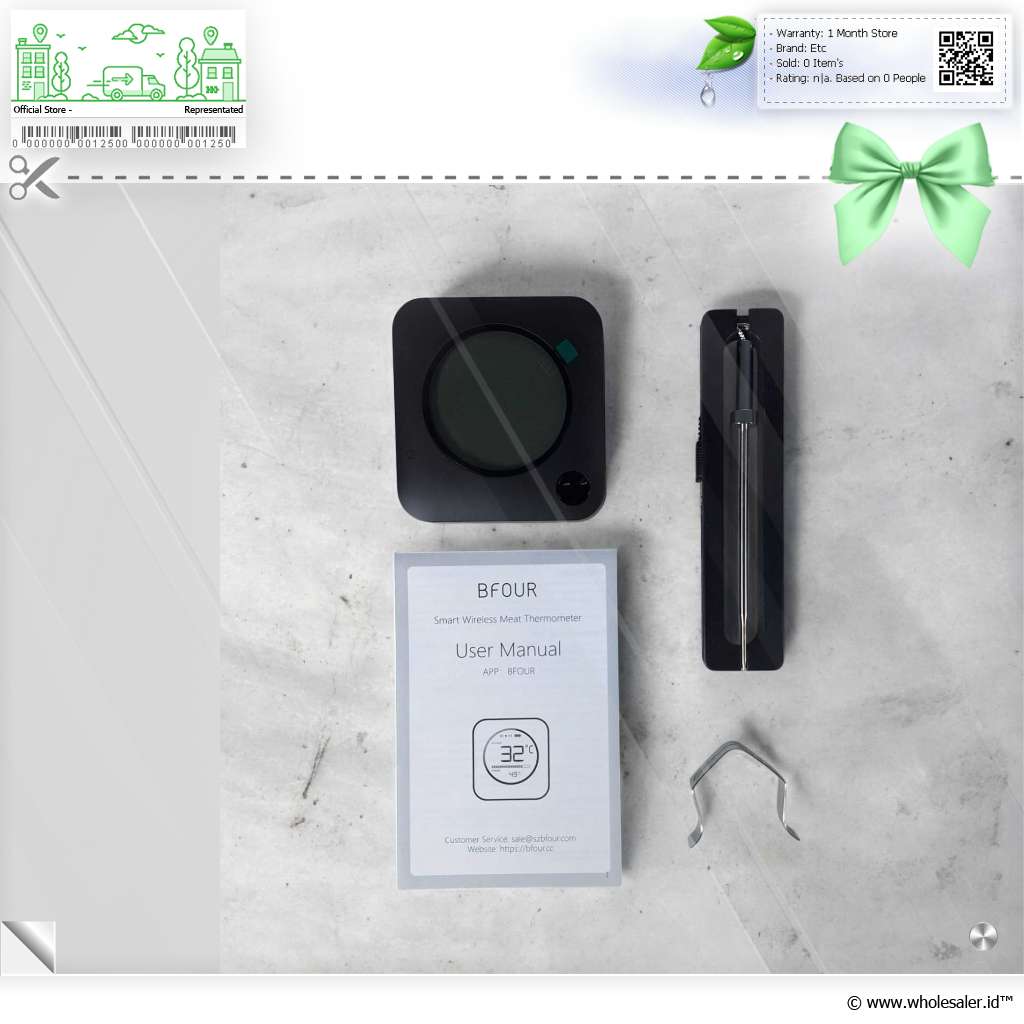 Nikmati cara baru dalam mengukur suhu makanan dengan BFOUR Smart Bluetooth Thermometer, termometer digital modern yang menggabungkan teknologi presisi tinggi dan konektivitas pintar. Dengan rentang pengukuran luas 1 - 300C, single probe cepat 2 detik, Bluetooth 5.1 berjarak 100 M, serta layar LCD display yang informatif, BFOUR menghadirkan kenyamanan dan akurasi tinggi untuk pengalaman memasak yang profesional. Tambahan fitur timer dan alarm otomatis membuat Anda tak perlu terus memantau masakan, biarkan BFOUR bekerja, dan Anda tinggal menunggu hasil matang sempurna.