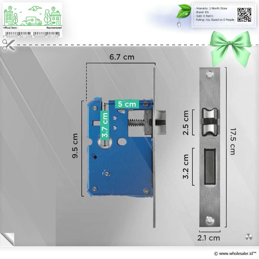 | Dimensi | : | Unit Indoor 6.8 x 7 x 28.3 cm Unit Outdoor 6.8 x 7 x 28.3 cm Mortise 2.1 x 6.7 x 17.5 cm Bracket Besi 12.5 x 3.7 cm Bracket Plastik 2.2 x 1.7 x 12 cm Rekomendasi Tebal Pintu 3.5-7 cm |
