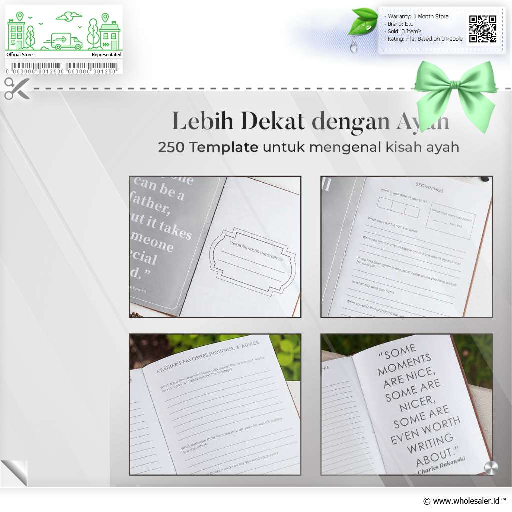 Lebih Dekat dengan Ayah Menawarkan aneka template dengan berbagai pertanyaan, gunakan bukiu jurnal ini untuk mengenal dan lebih dekat dengan ayah. |