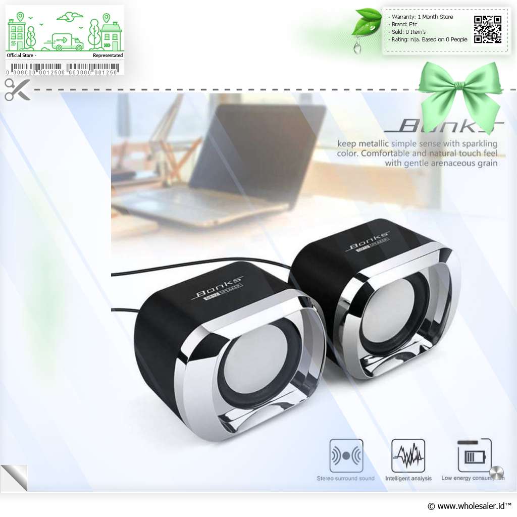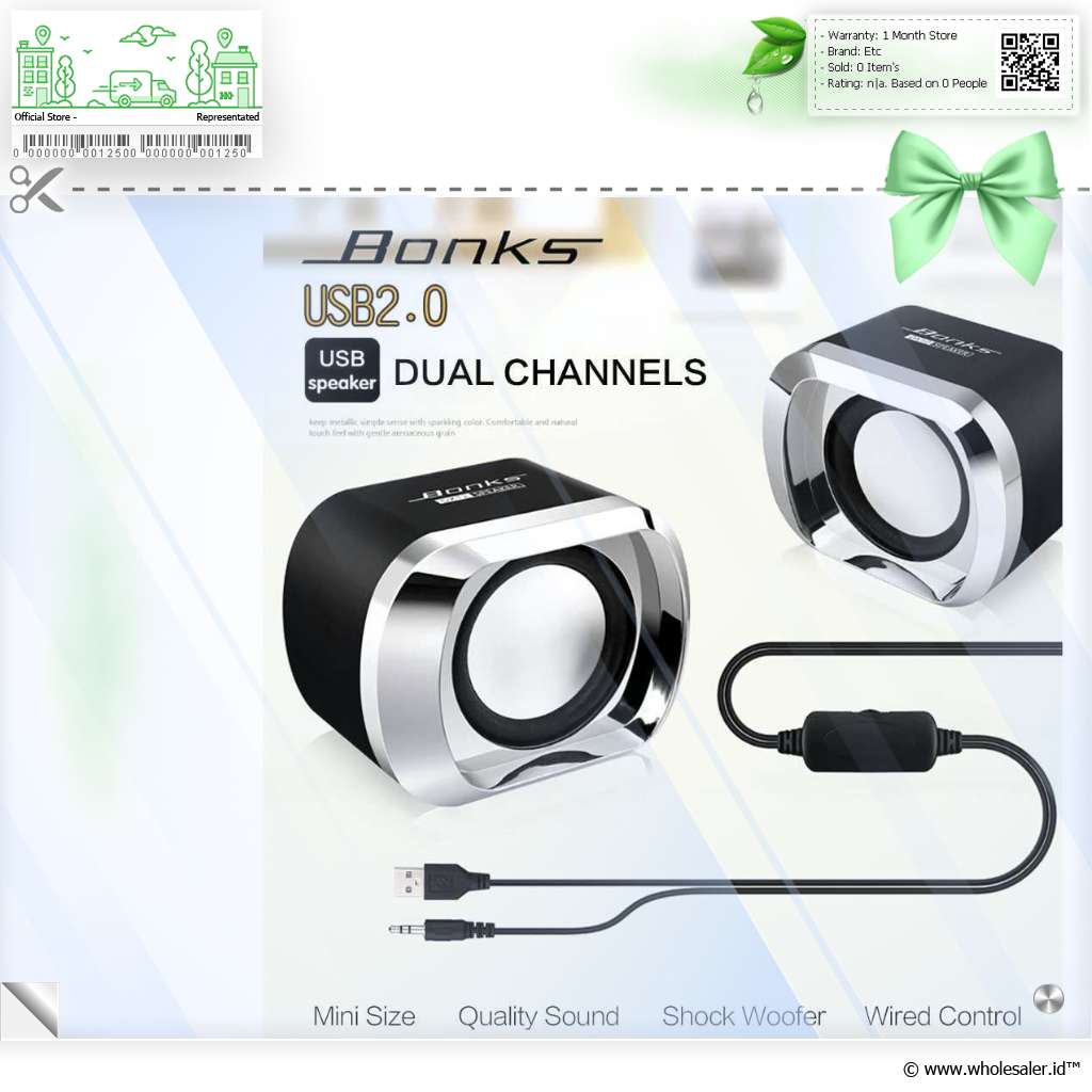 Lengkapi perangkat audio Anda di rumah dengan speaker stereo dari BONKS. Speaker ini hadir dengan desain yang minimalis, power yang kuat, serta output suara yang jernih dan memanjakan telinga. Pemasangan pada laptop dan PC jadi semakin mudah karena speaker ini menggunakan kabel USB dan kabel 3.5 mm.
