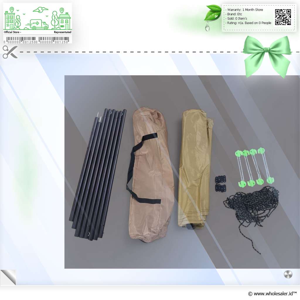 Dimensi | : | 3 x 3 M Terbuka 3 x 3 M Terlipat 64 x 15 x 15 cm Pasak 19.5 cm 5 x 3 M Terbuka 5 x 3 M Terlipat 64 x 15 x 15 cm Pasak 19.5 cm |