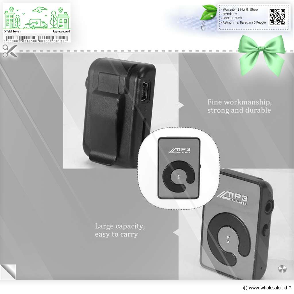 | Desain Portabel Berkat ukurannya yang kecil, MP3 player ini mudah dibawa ke mana pun Anda pergi. Dilengkapi klip di bagian belakang yang memungkinkan perangkat dipasang di tas, saku celana, atau pakaian, sehingga lebih aman dan praktis digunakan saat beraktivitas. |