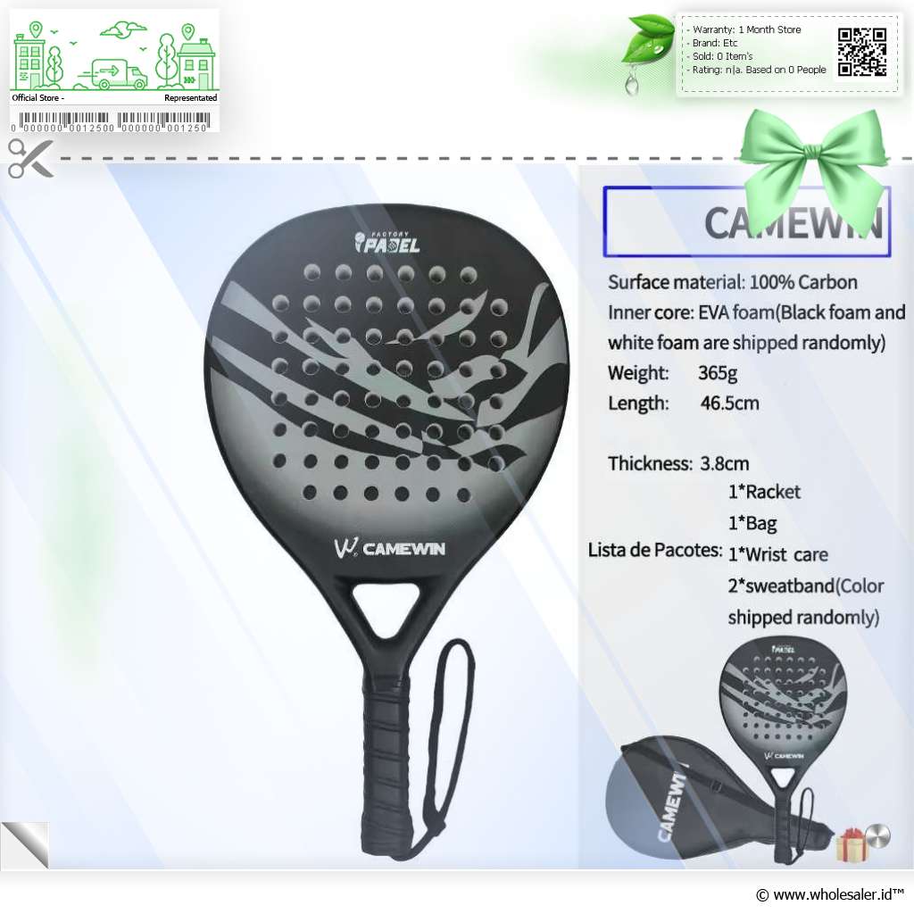 - 1 x CAMEWIN Raket Padel Teardrop Carbon Fiber 3.8cm Thickness 365g - 4014