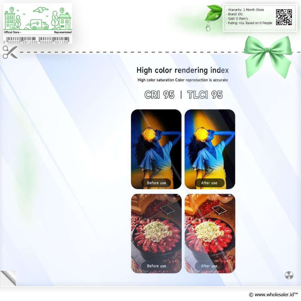 | Reproduksi Warna Akurat Dengan CRI >95, setiap warna terlihat alami dan realistis, menampilkan hasil yang identik dengan pencahayaan alami. Fitur ini memastikan kulit tampak lembut, warna produk akurat, dan detail kecil terlihat jelas tanpa distorsi warna. |