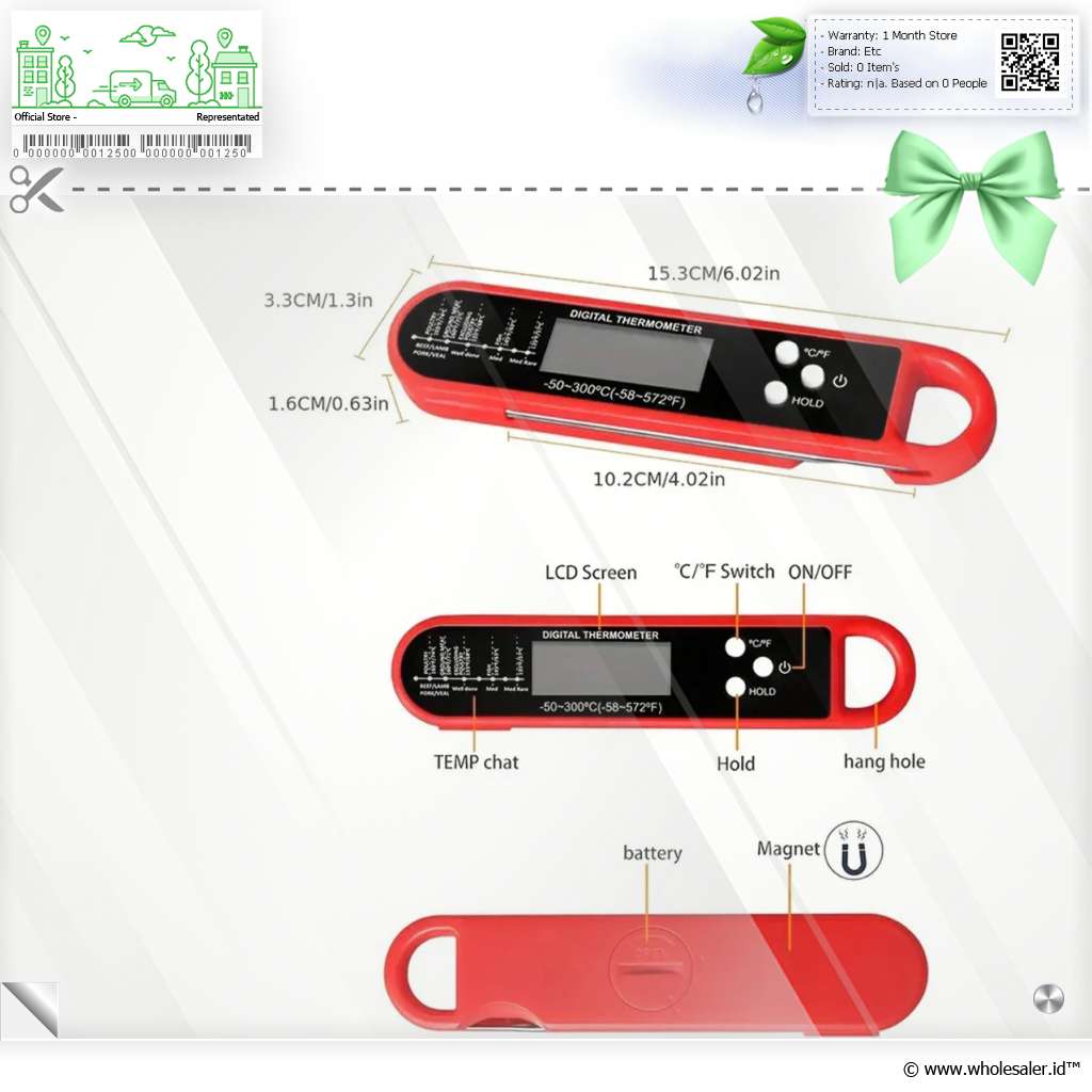 | Cepat dan Akurat Menggunakan sistem pengukuran digital, termometer makanan ini dapat memberikan hasil yang lebih akurat dalam waktu cepat. Praktis dan cocok untuk penggunaan sehari-hari. |
