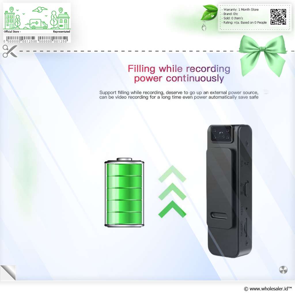 Dilengkapi dengan fitur night vision, jadi Anda tetap dapat merekam dengan jelas di saat malam hari. Kameranya bisa diputar 90 , lengkap dengan clip sehingga Anda bisa meletakkannya di saku baju, tas, hingga saku celana yang akan memudahkan Anda untuk merekam tanpa memegangnya.