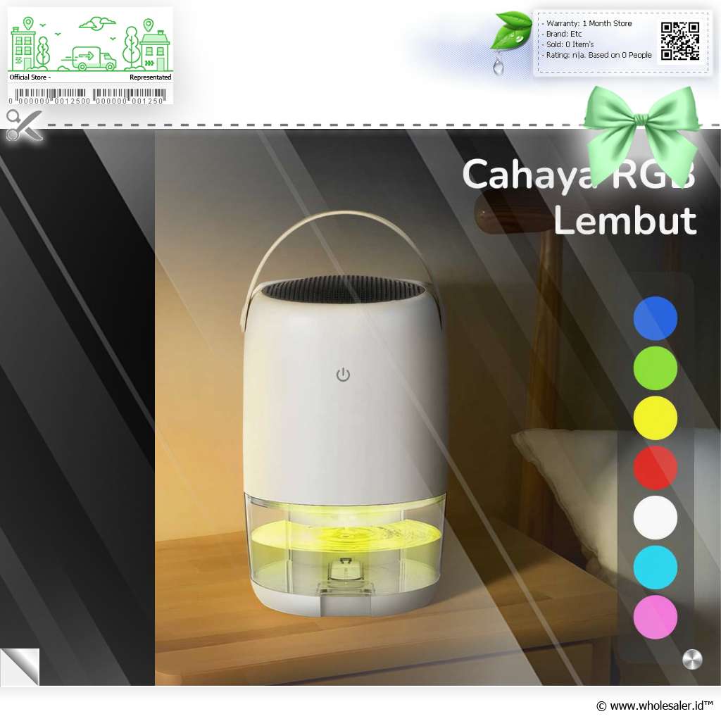 Informasi Produk Cikuso Dehumidifier Moisture Absorber Low Noise RGB Light 40dB 1100ml - GB-BX08