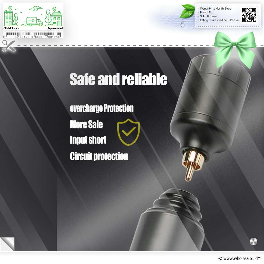 | Interface Listrik RCA Tattoo pen ini menggunakan koneksi RCA standar, sehingga kompatibel dengan berbagai jenis power supply atau adaptor RCA lainnya jika digunakan tanpa baterai. Memberikan fleksibilitas yang luas untuk berbagai cara penggunaan. |