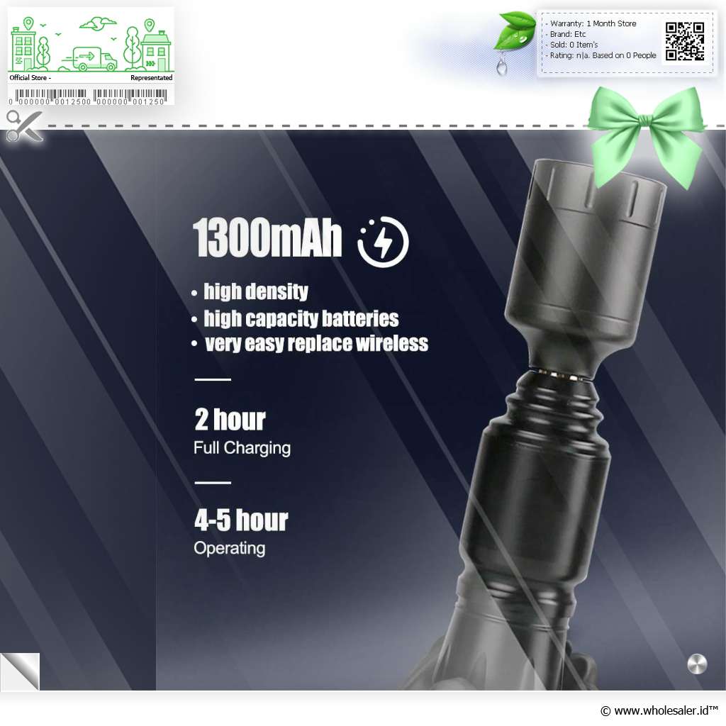 | Baterai Tahan Lahan 1300 mAh Menawarkan model wireless, tattoo machine ini dibekali baterai rechargeable berkapasitas 1300 mAh. |
