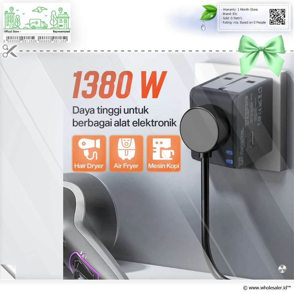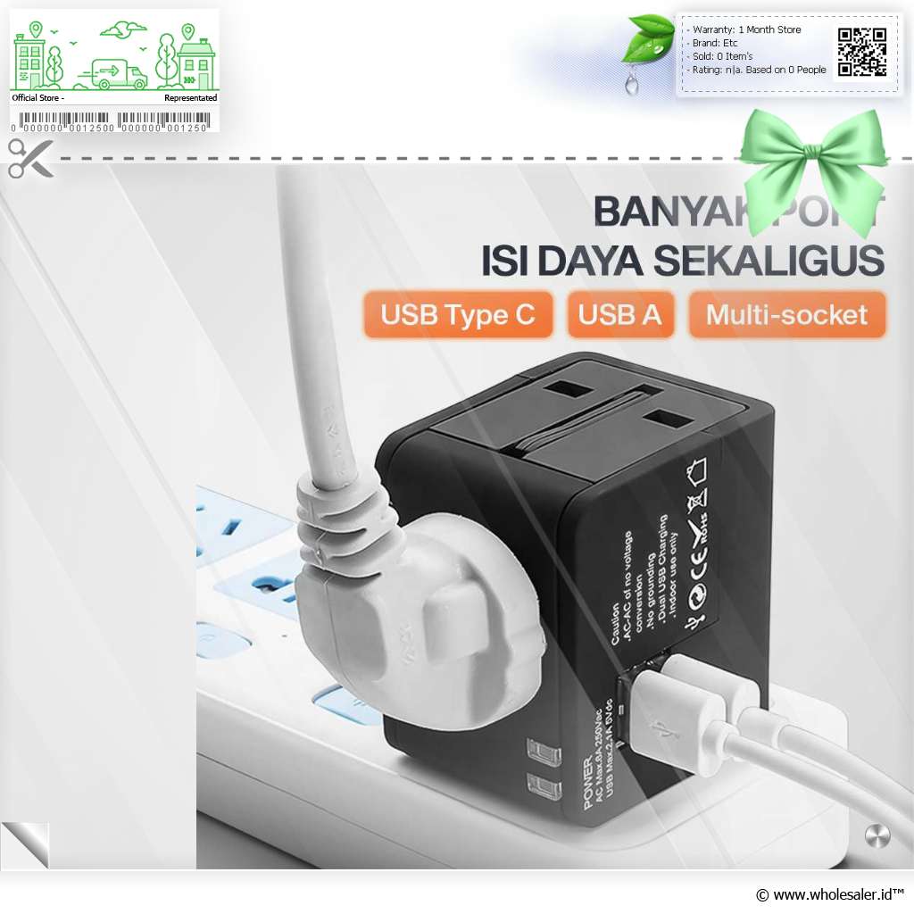 | Daya Tinggi untuk Berbagai Alat Dibuat untuk para traveler, soket pada universal travel adapter ini dapat menayalurkan daya hingga 1380 W. Aliran daya yang stabil kompatibel dengan berbagai alat elektronik. |