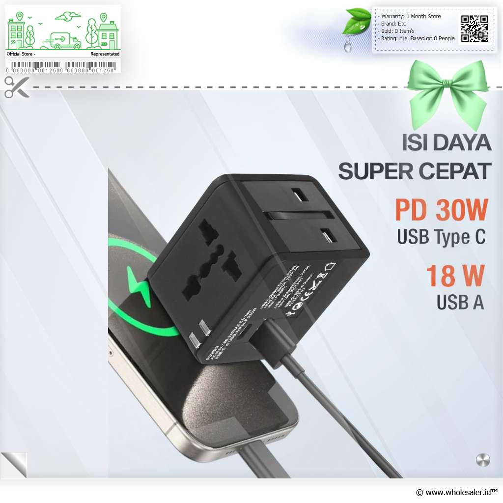 Isi daya smartphone dan gadget lainnya saat traveling tanpa masalah dengan universal travel adapter COKYI. 4 Jenis plug universal dengan output 1380 W dapat digunakan di berbagai negara di seluruh dunia. Hemat waktu pengisian daya berkat fitur fast charging hingga 30 W yang praktis.