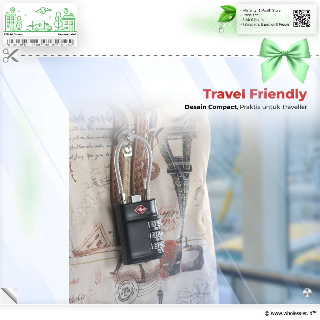 | TSA Lock Praktis Bepergian lebih tenang dengan gembok koper berstandar TSA. Cukup buka dengan kunci khusus untuk memeriksa barang tanpa harus merusak koper atau tas. |