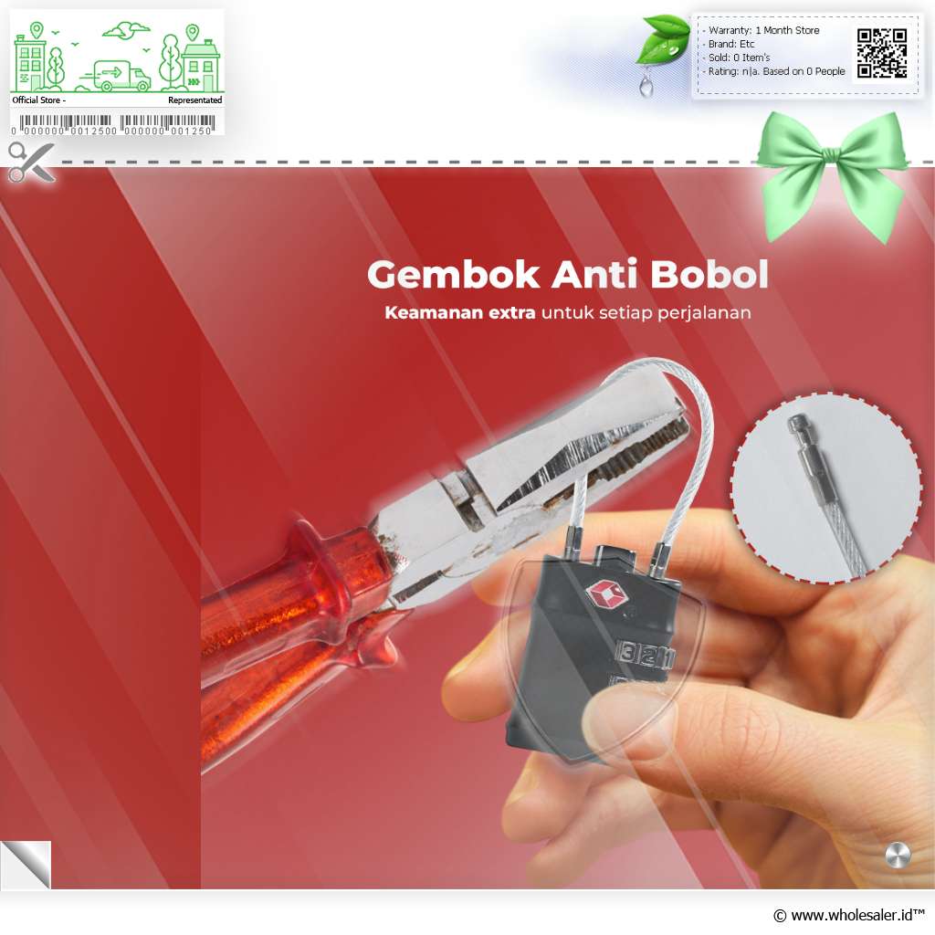 Tali zinc alloy kuat dan kokoh yang membuat gembok koper tidak mudah dibobol. Praktis, kuat, dan serbaguna untuk temani waktu traveling Anda!