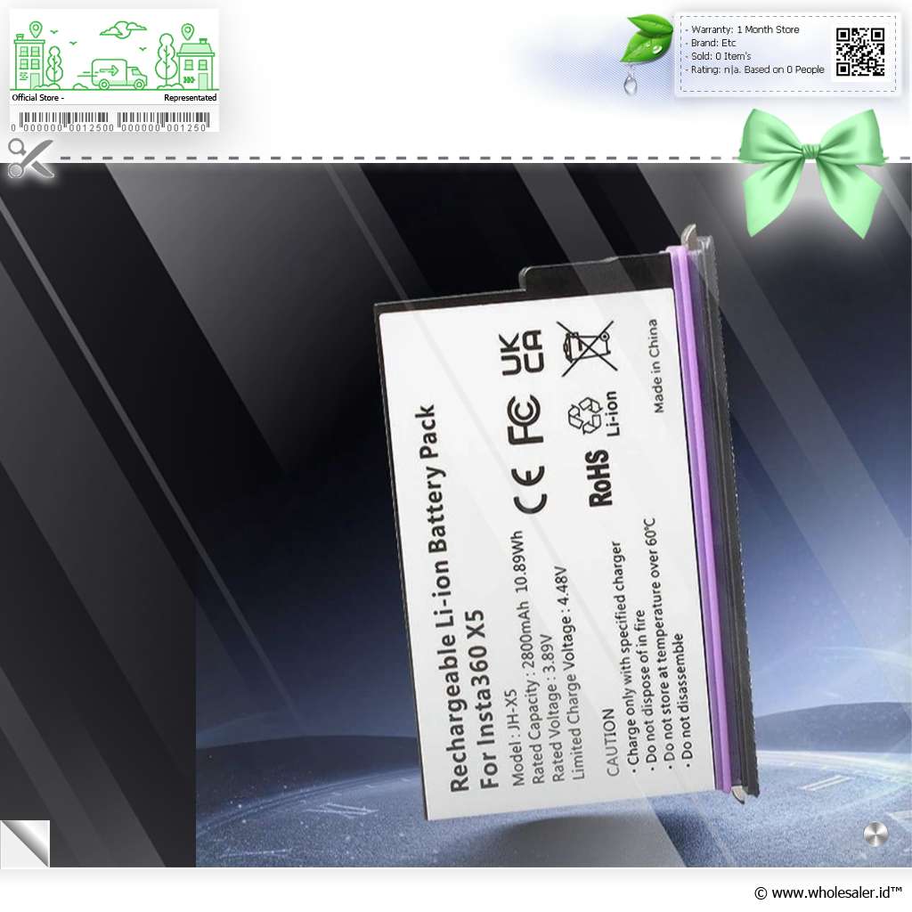 - 1 x COOLSHOW Baterai Kamera Aksi Insta360 X5 Rechargeable 2800mAh - CL-280