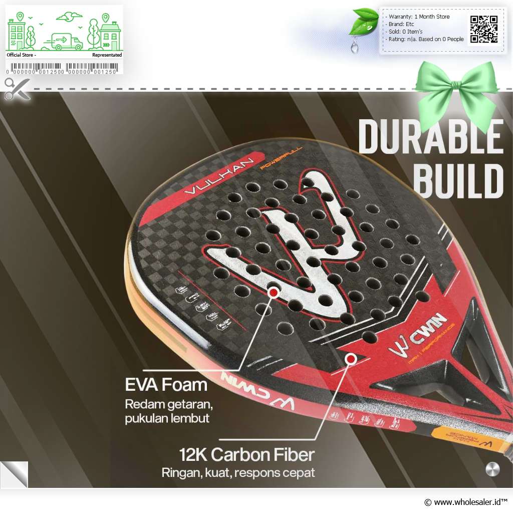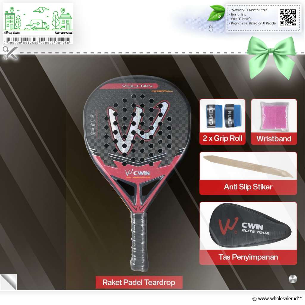 - 1 x CWIN VULKAN Raket Padel Teardrop 12K Carbon Fiber 3.8cm Thickness 365g - 5025
